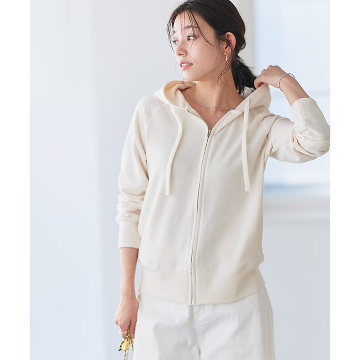 Pierrot UVカットスウェットジップパーカー ☆ パーカー スウェット ジップ 綿混素材 UV cut 機能 フード付き ピエロ 春 楽ちん 大人カジュアル トレンド ジップパーカー トップス