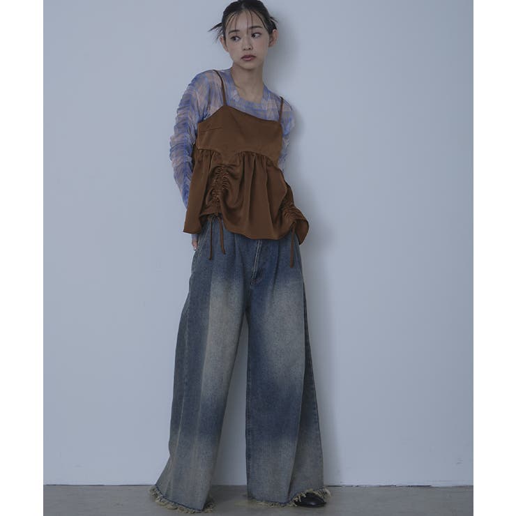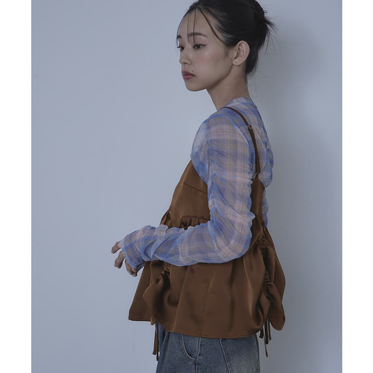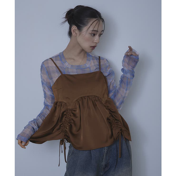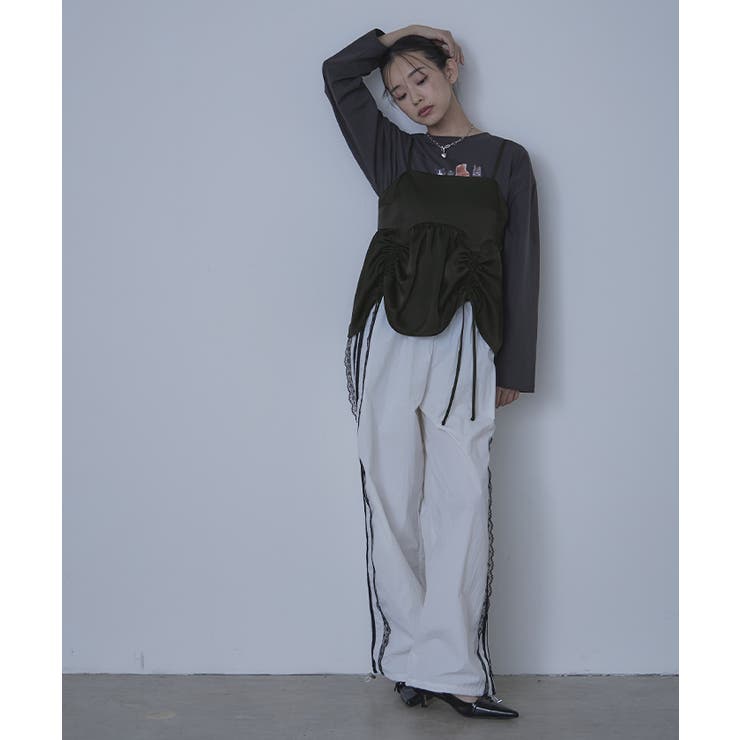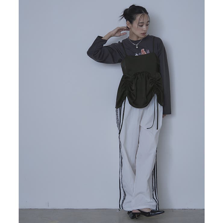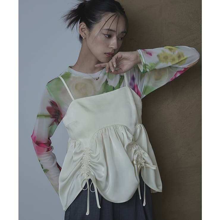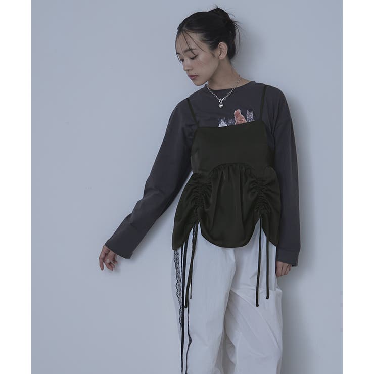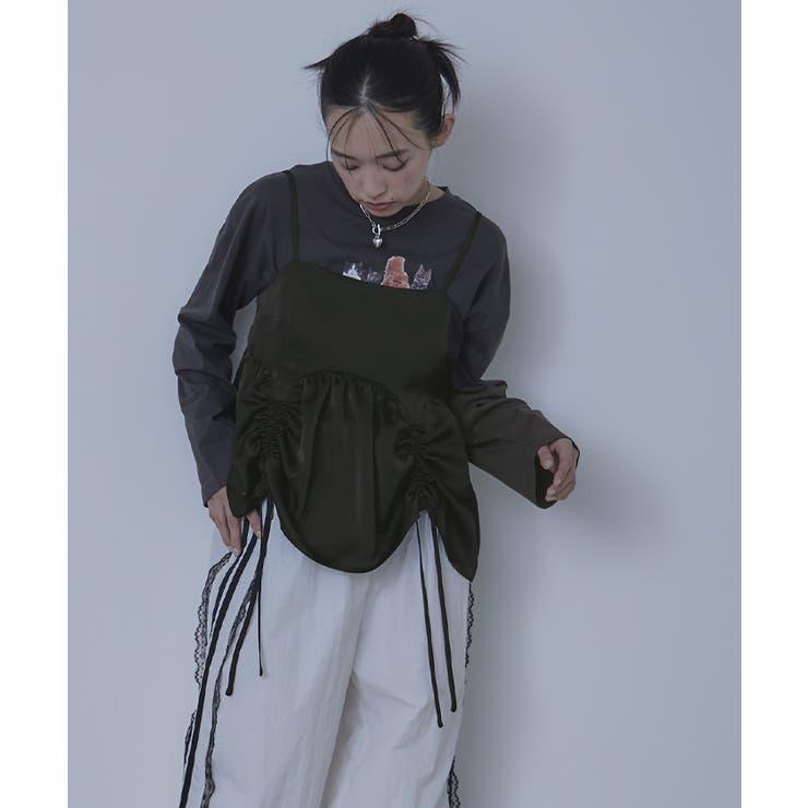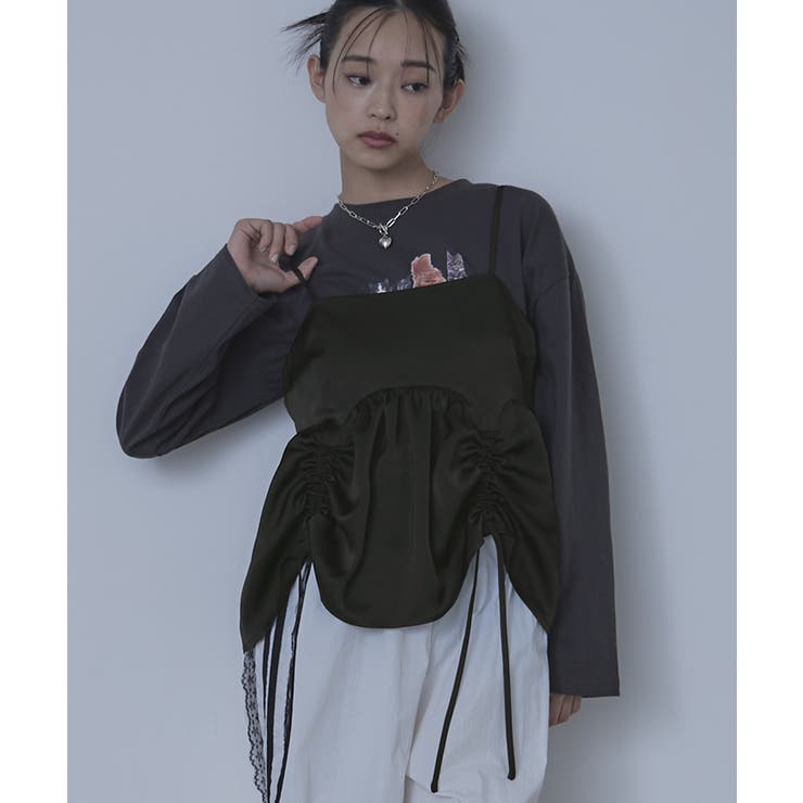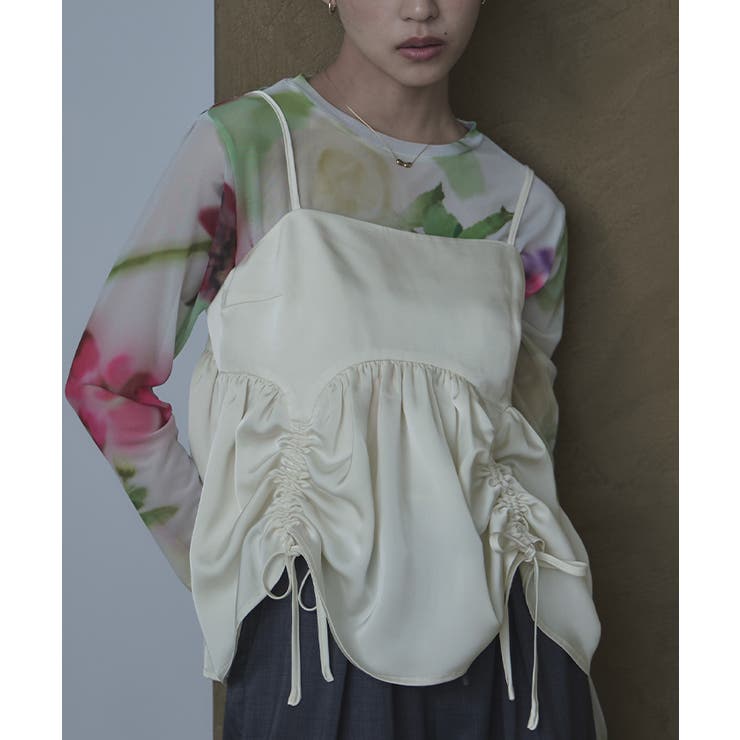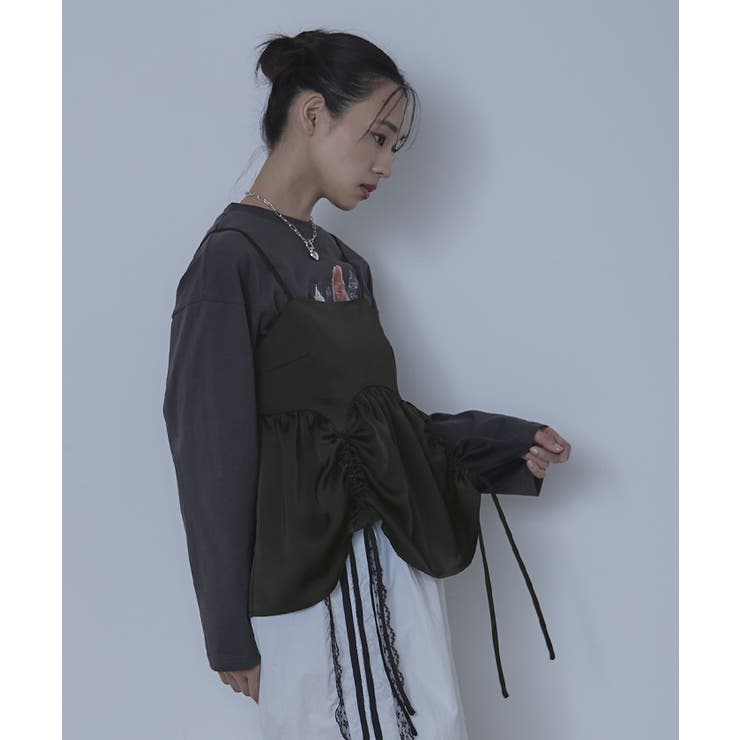 【2/23 1:59まで 最大20%OFFクーポン】サテンドロストギャザービスチェ【miette ミエット】