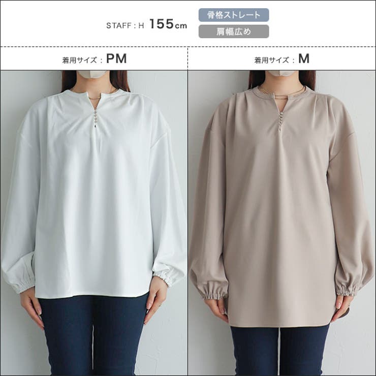 Pierrot ペアスキンスキッパーチュニック ☆ チュニック ペアスキン ボタン フレア トップス ON OFF ピエロ トップス