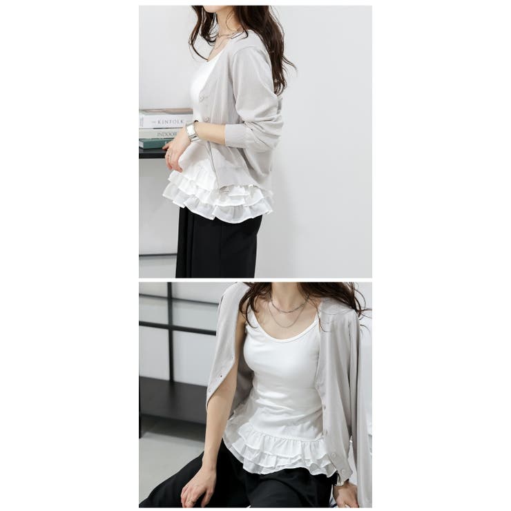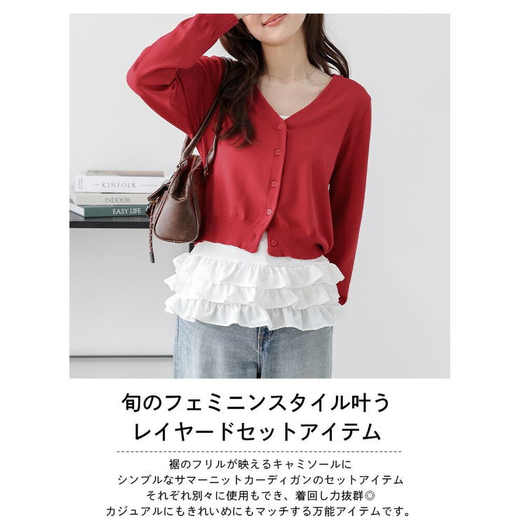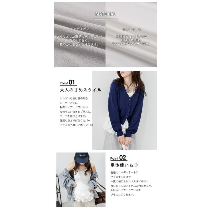 【4/25限定 20%OFFクーポン】AMELY カーディガン キャミソール セットアイテム レイヤード フリル サマーニット トレンド フェミニン 着回し カジュアル 大人可愛い レディース おすすめ おしゃれ フリーサイズ 春夏 【atpss25-1