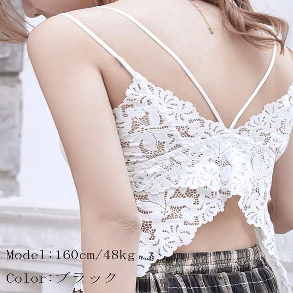 【RakutenFashionSALE50%OFF】インナー パッド付き ノンワイヤー 韓国風 透け 肌着 バックレース 背中見せ ショート丈トップス キャミ チラ見せ 肌見せ セクシー