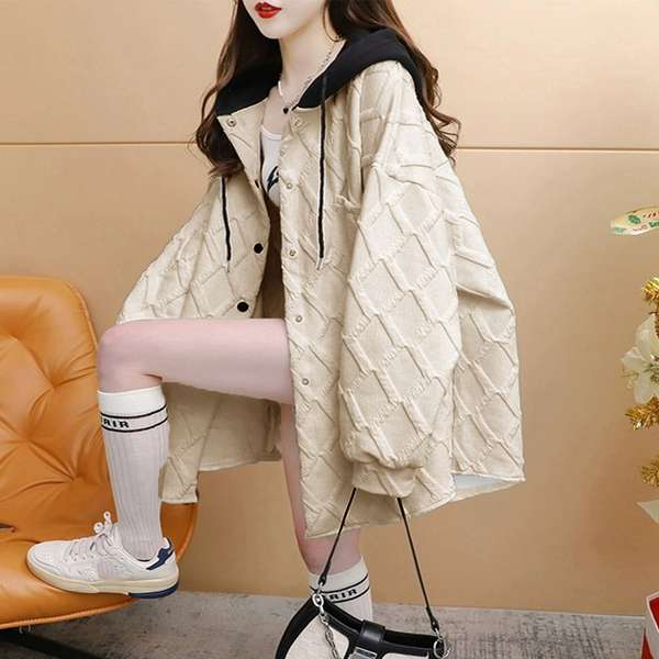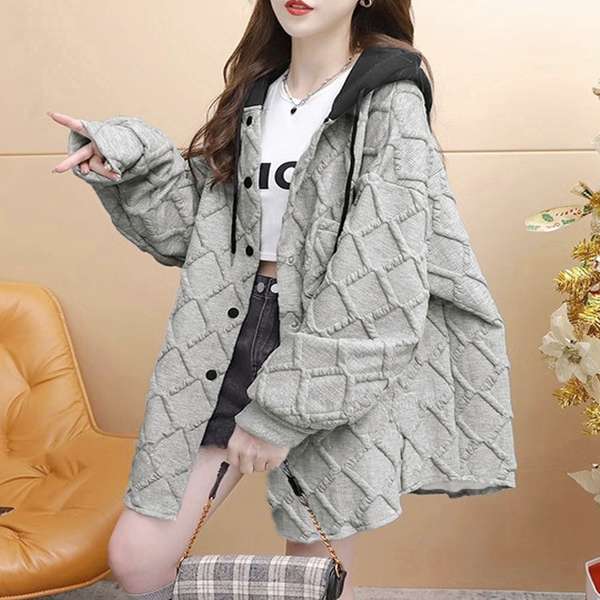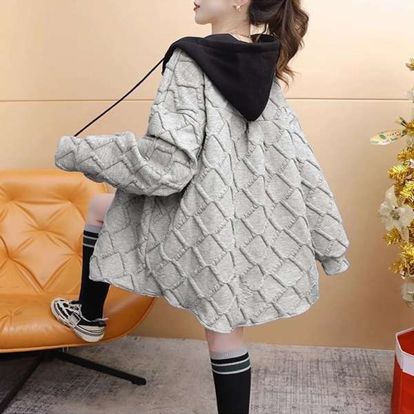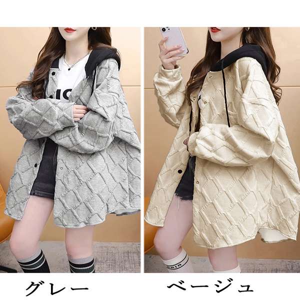 【スーパーSALE50%OFF】送料無料 フード付きトレーナー長袖 ゆったり春秋服 体型カバー羽織り ジャカードジャケット ロング スウェットカーディガン お洒落 ライトアウター無地 ゆるトップス着やせ ストリートスエット