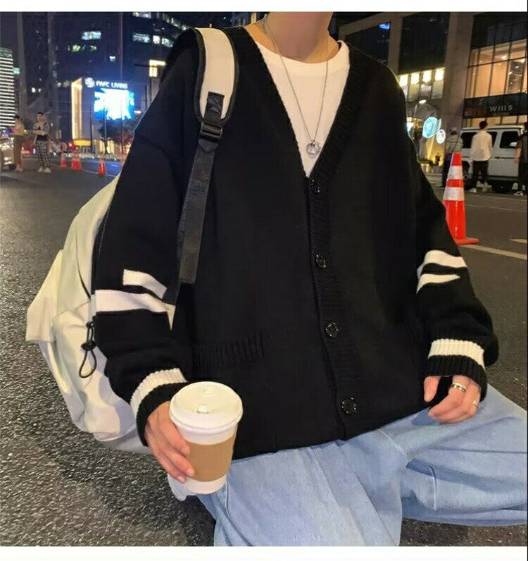 カーディガン メンズ ニット カジュアル スウェット トレーナー 長袖 トップス オーバーサイズ Vネック レディース リラックス ふんわり お揃い 春 秋 冬 学生 ポケット付 無地 ニットソー ギフト プレゼント 贈り物 黒 白 送料無料 男女兼用 ユニセックス おしゃれ 春 秋