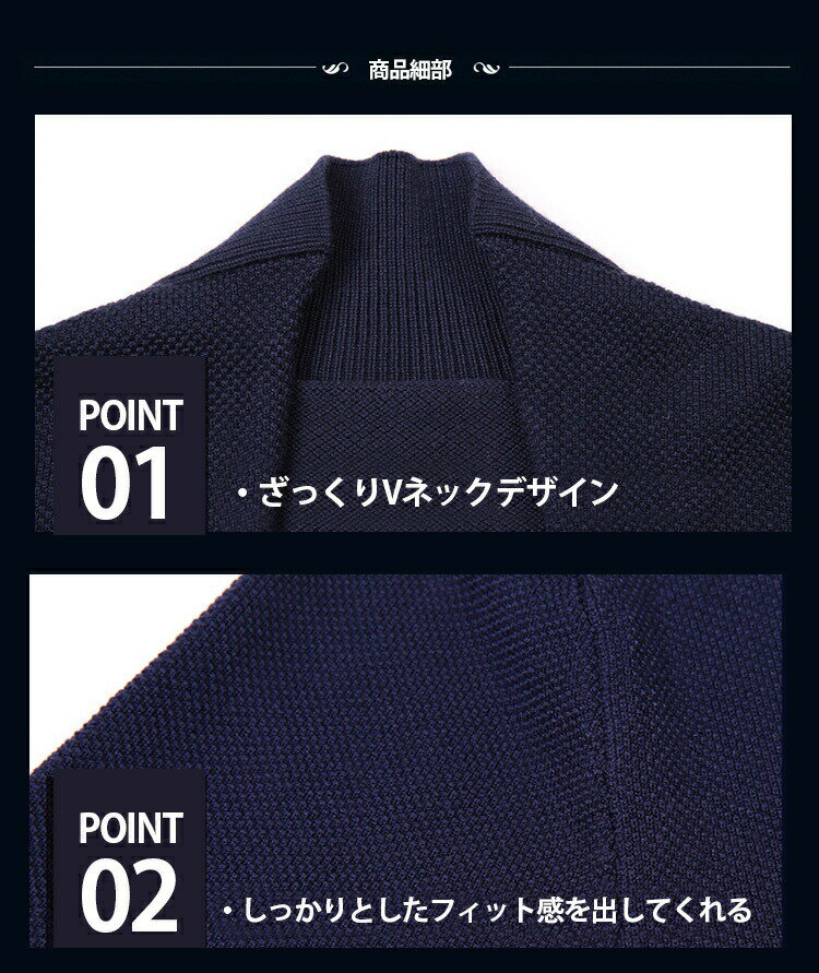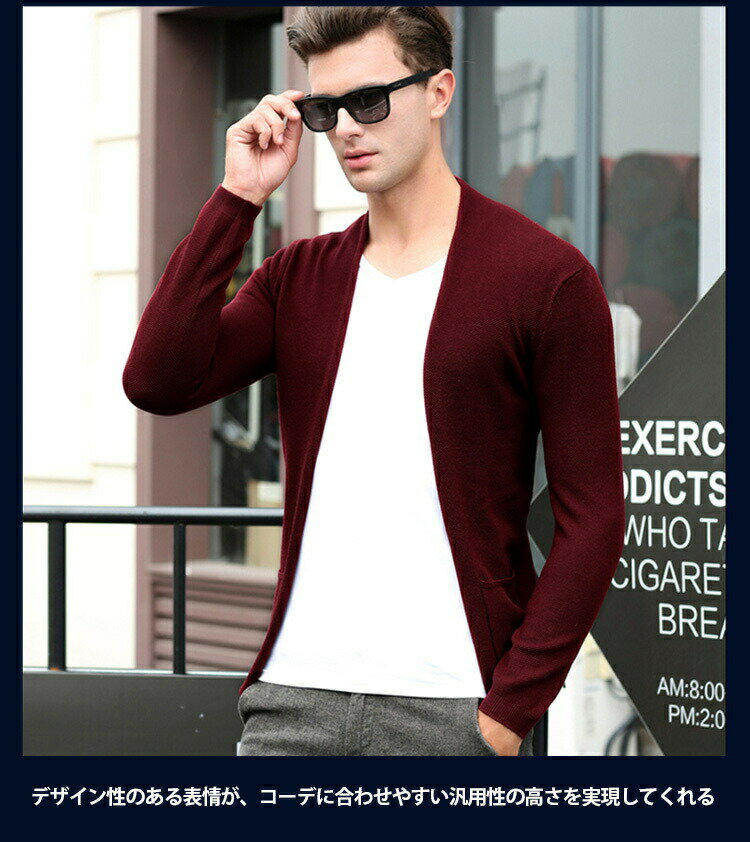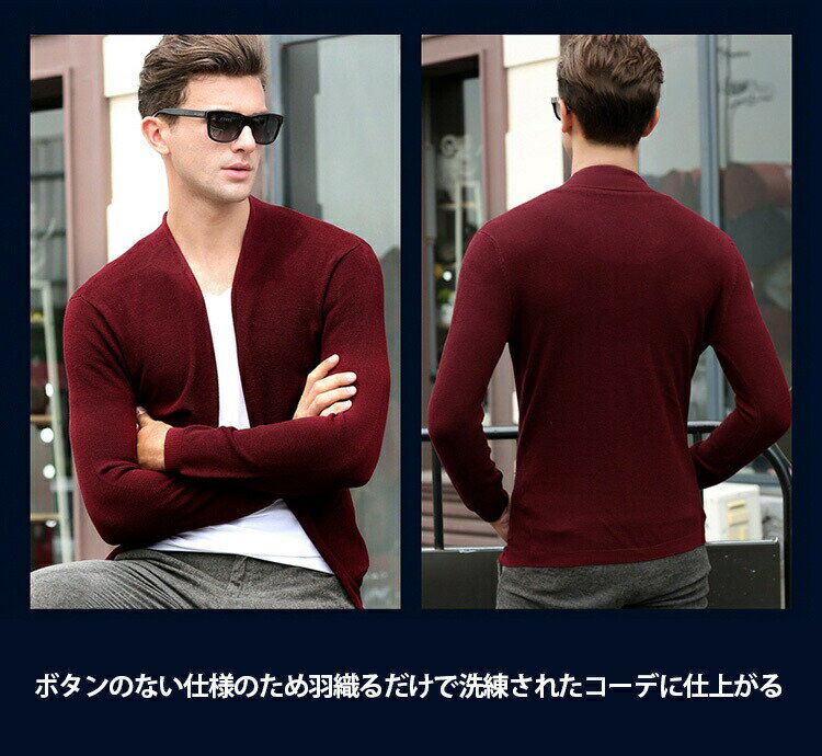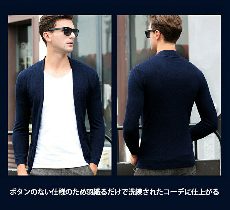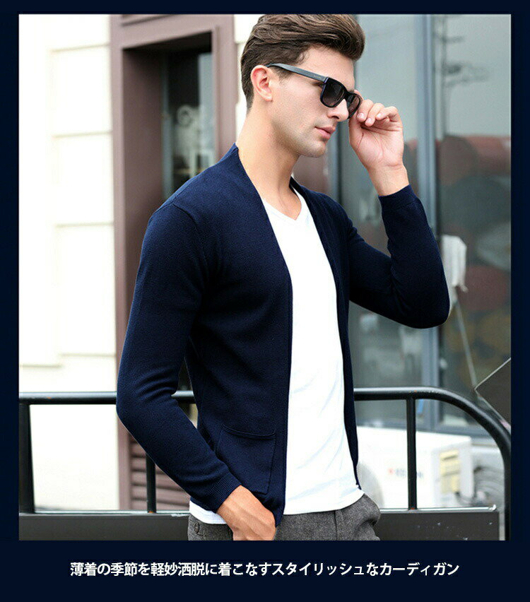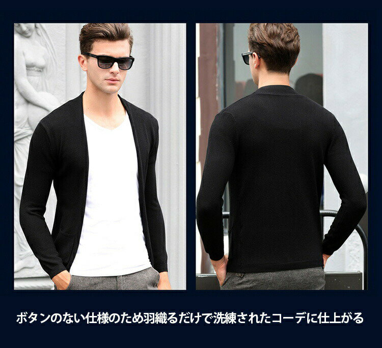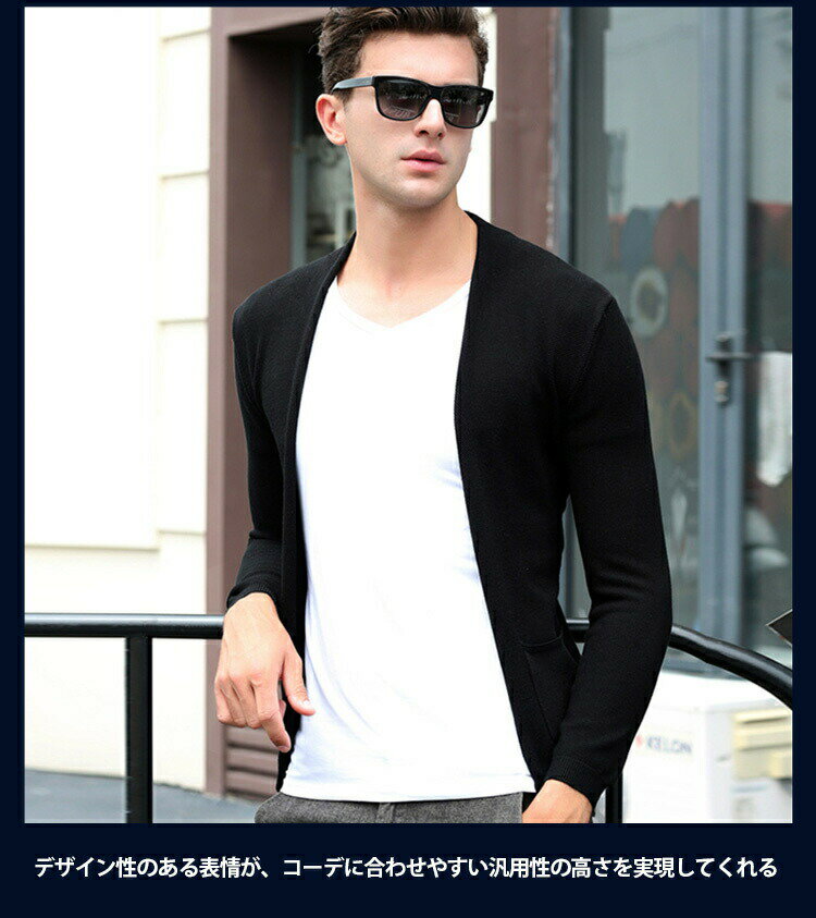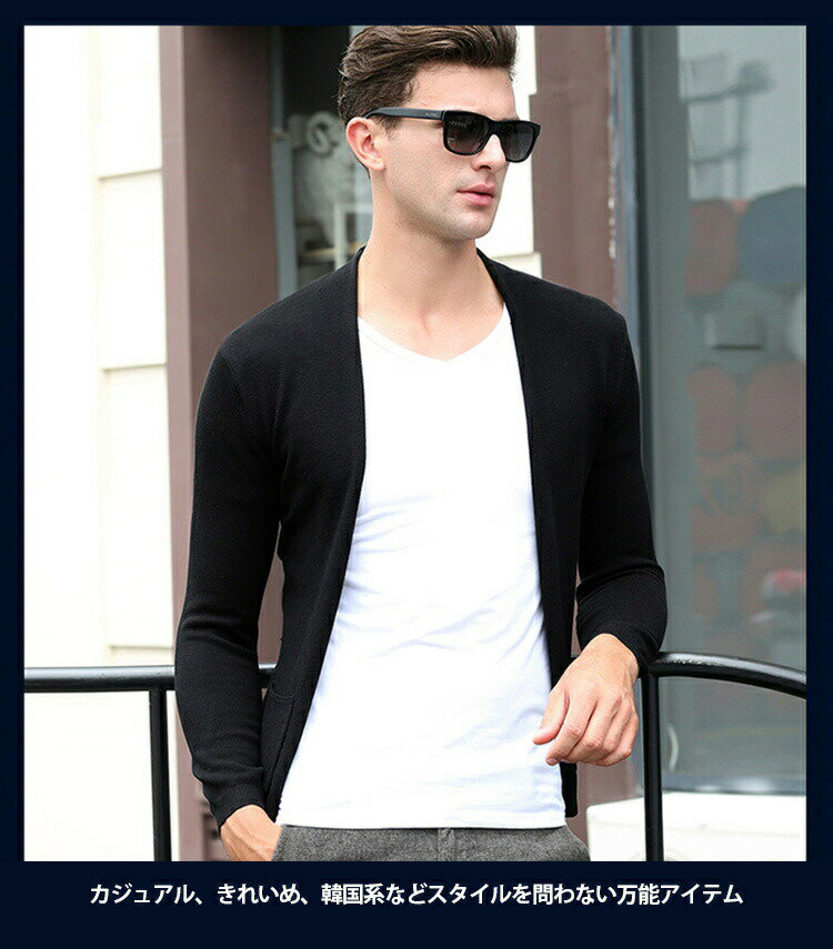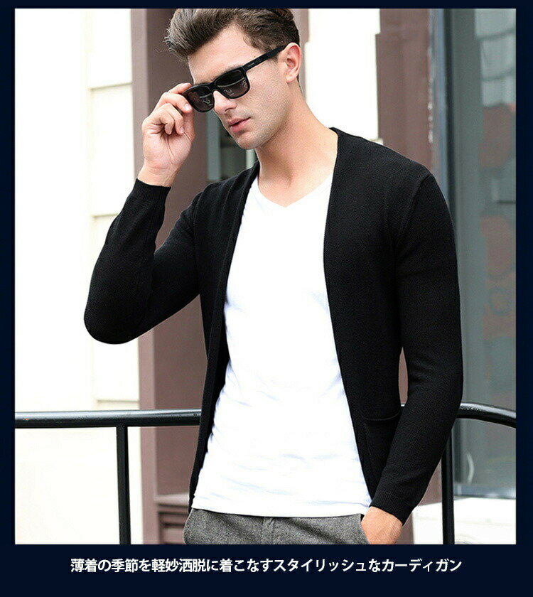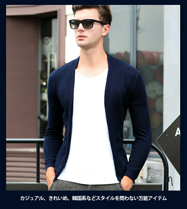 カーディガン トップス メンズ ニット 無地 長袖 ロング ビジネス カジュアル シンプル ジャケット コーデ ボレロ風 前開き 職場 通勤 おすすめ 定番 春秋冬 春 春服 Vネック 長袖 洗える ストレッチ 伸縮性 シンプル カジュアル 厚手 カーデ アウター ボタンなし シンプル