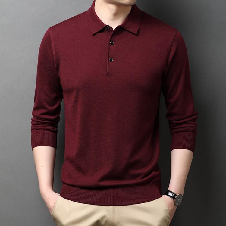 ニットポロシャツ メンズ 折り襟 セーター 無地 長袖 ウール混 ニットトップス ゴルフウェア 秋冬 おしゃれ ニット ポロシャツ ニットセーター 男性 トップス ポロ ニット 紳士 防寒 暖かい 通勤 オフィス スリム 細身