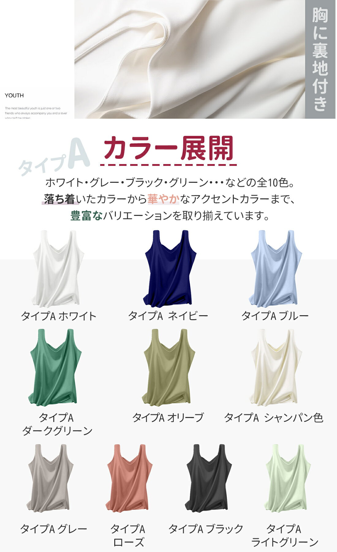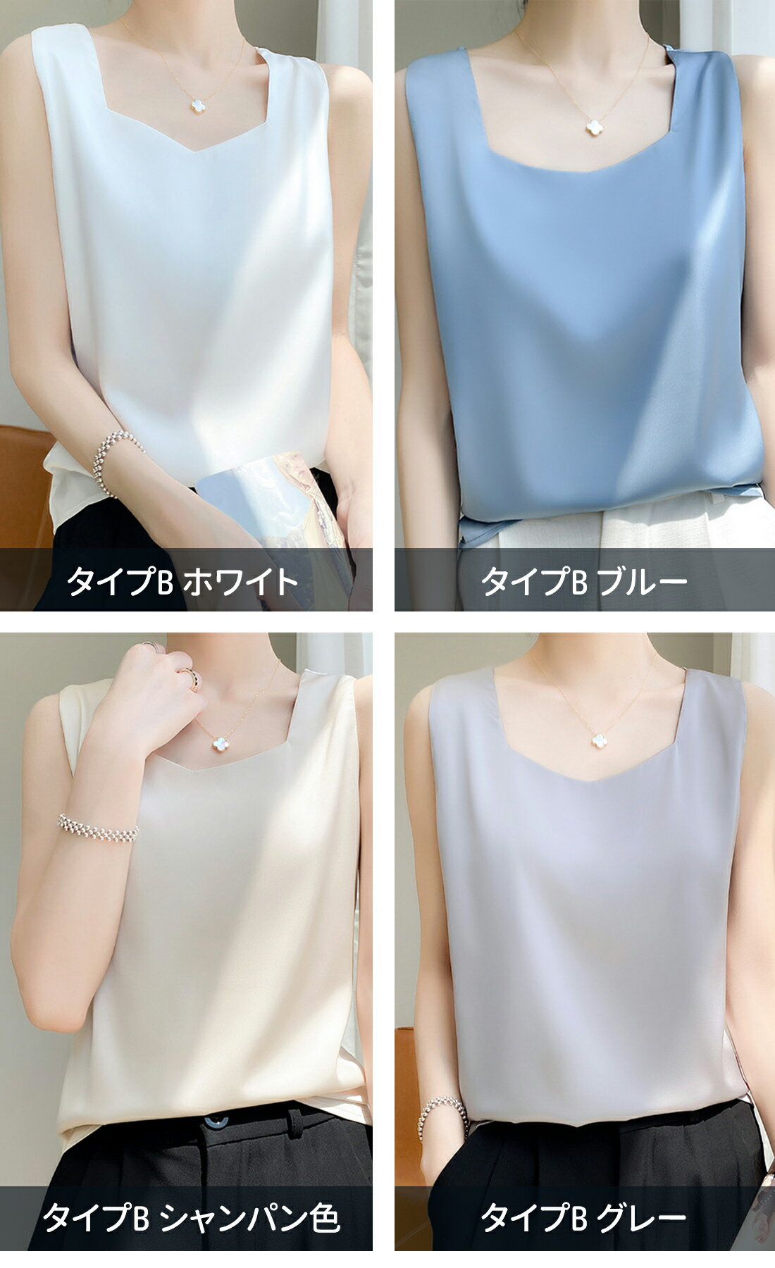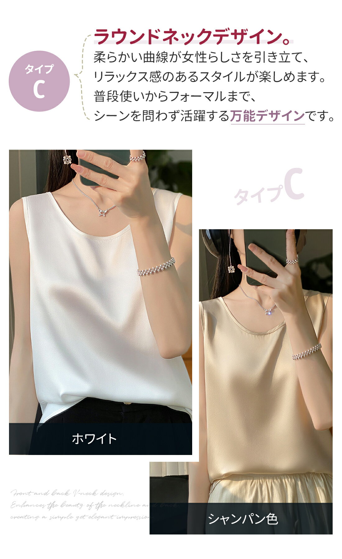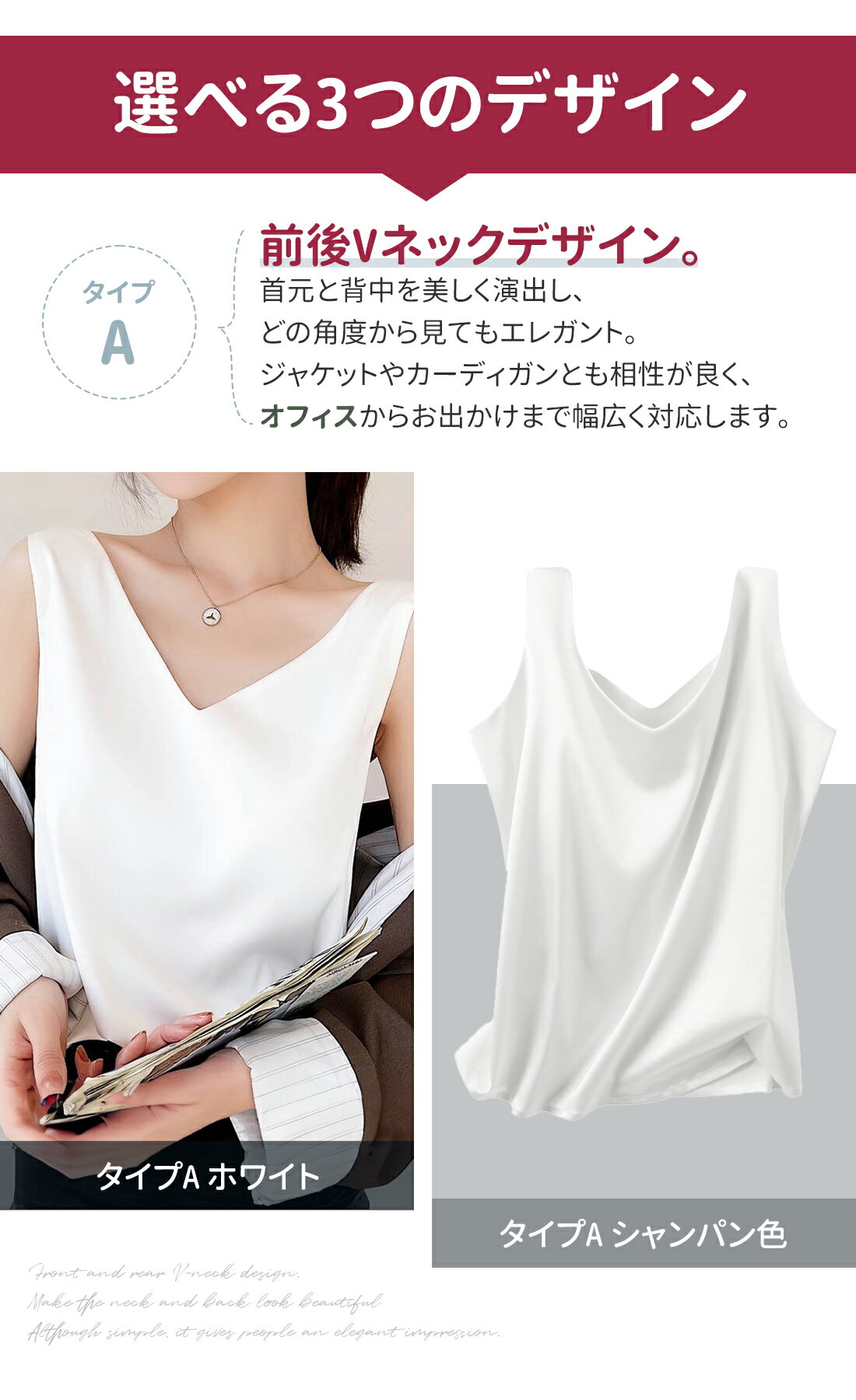 サテンタンクトップ インナー インナーシャツ シルクシャツ レディース 無地 Vネック 上品 高級感 春夏秋 大人カジュアル 通勤用 体型カバー 着痩せ 涼感