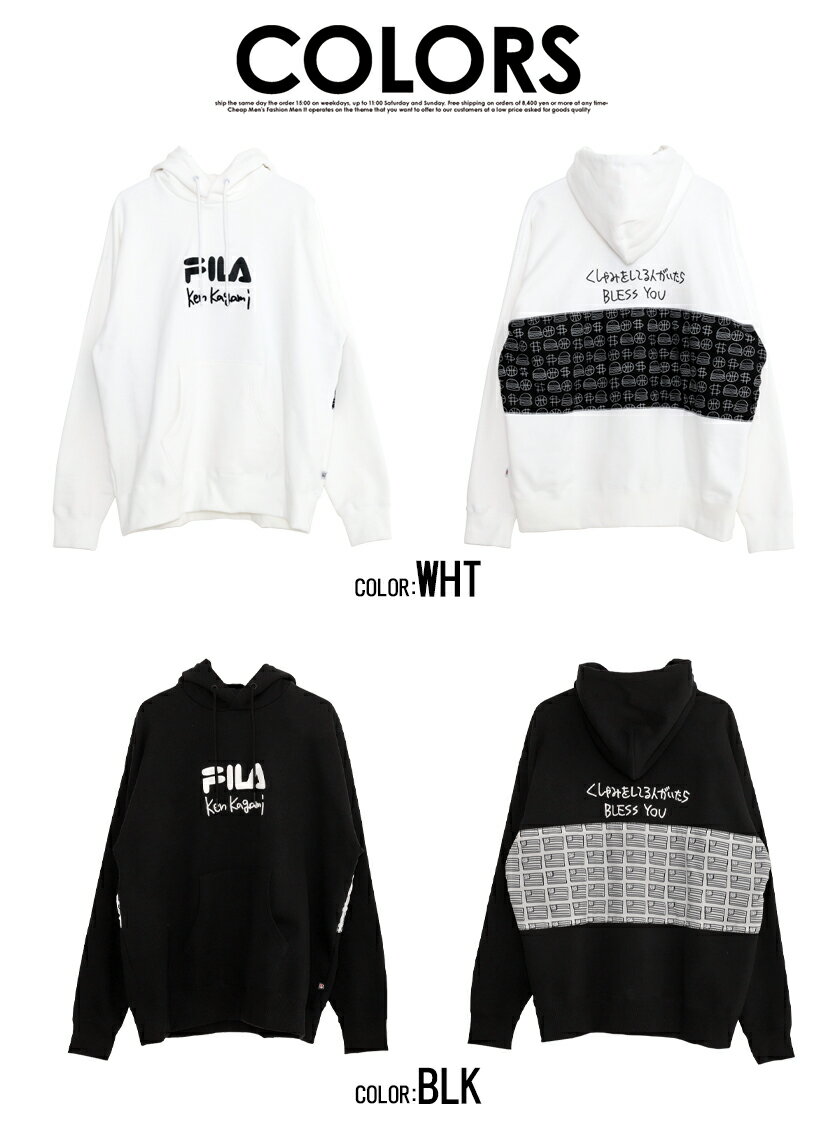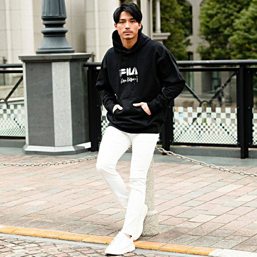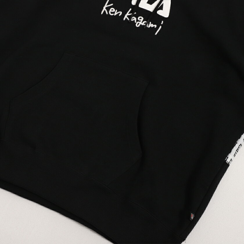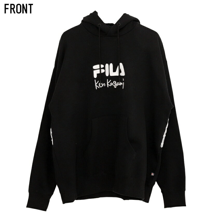 【送料無料】FILA フィラ プルパーカー メンズ フーディー スウェット ヘビーウェイト 裏毛 綿 コットン 厚手 ken kagami 加賀美健 コラボ ヘリテージ ユニセックス カジュアル ストリート ブラック ホワイト 黒 白 M L 春 春服 2021【DTK】