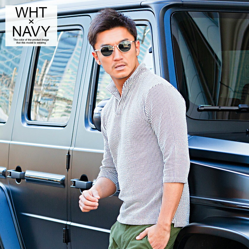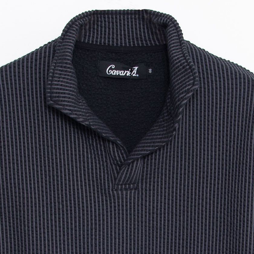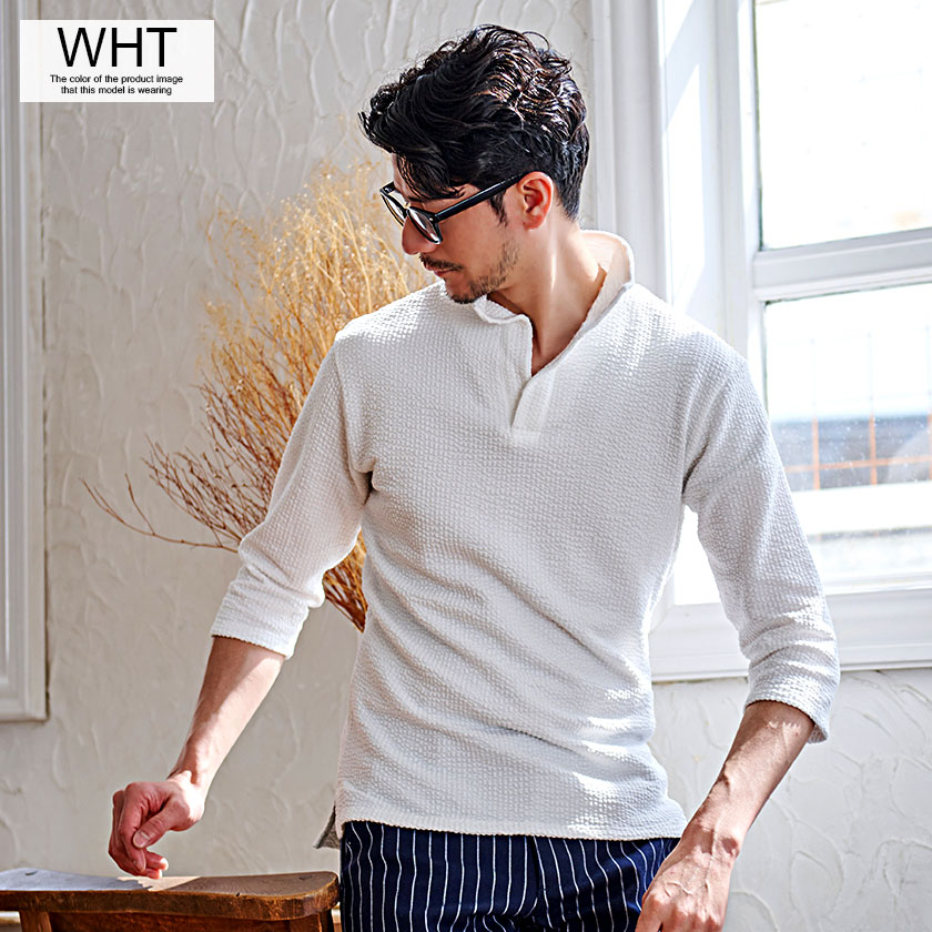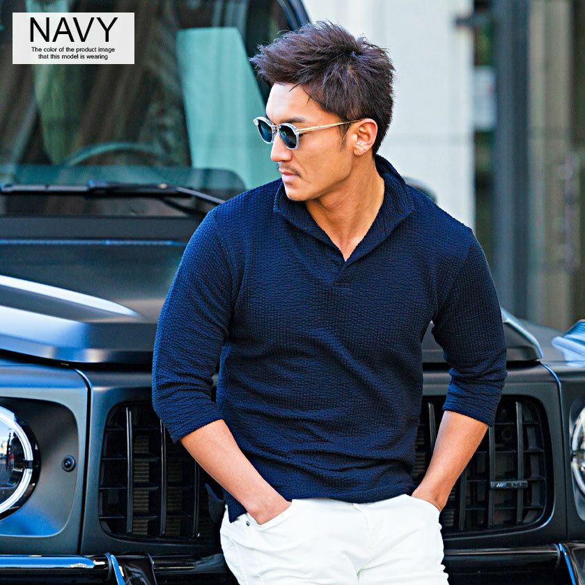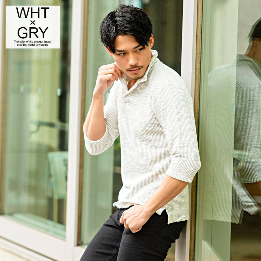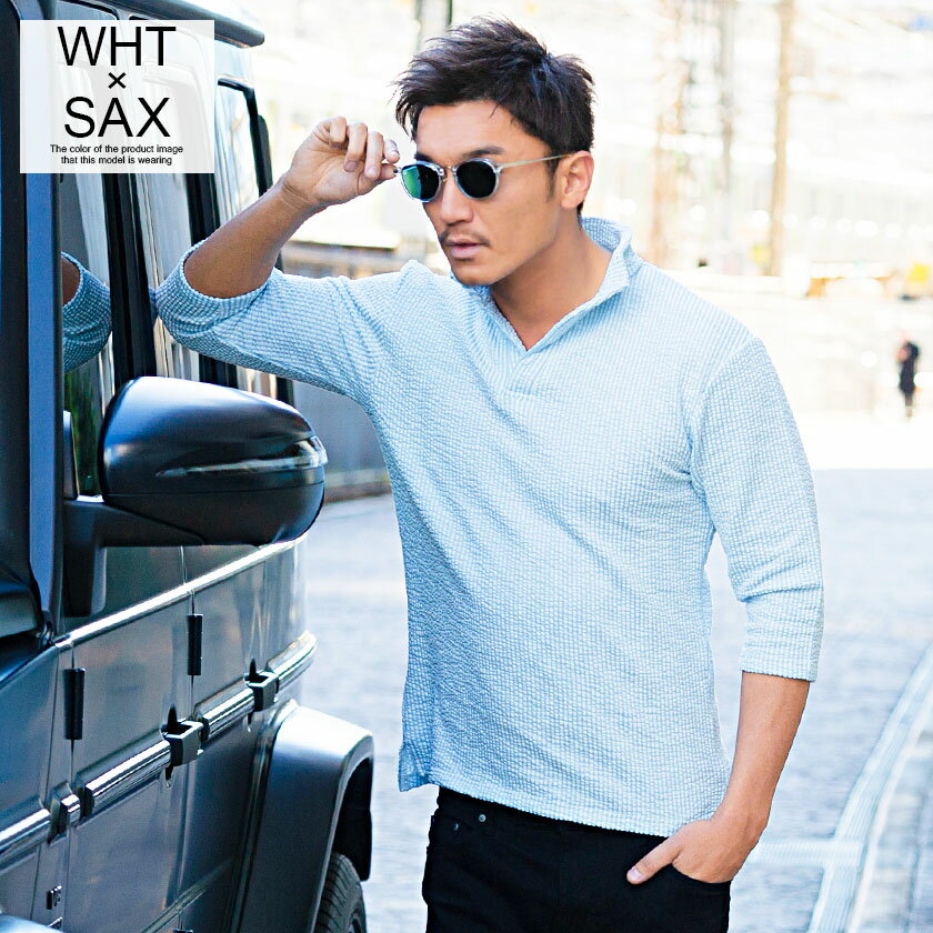 ポロシャツ メンズ ブランド おしゃれ 大人 カジュアル ファッション 7分袖 七分袖 シアサッカー イタリアンカラー 立襟 スキッパー ポロ 開襟 細身 タイト きれいめ きれい目 ゴルフウェア 父の日 ギフト 黒 白 M L XL 春 夏 CavariA 男性 男 服【郵】↑↑