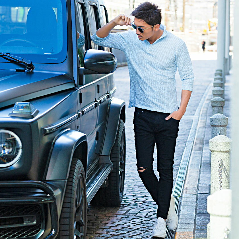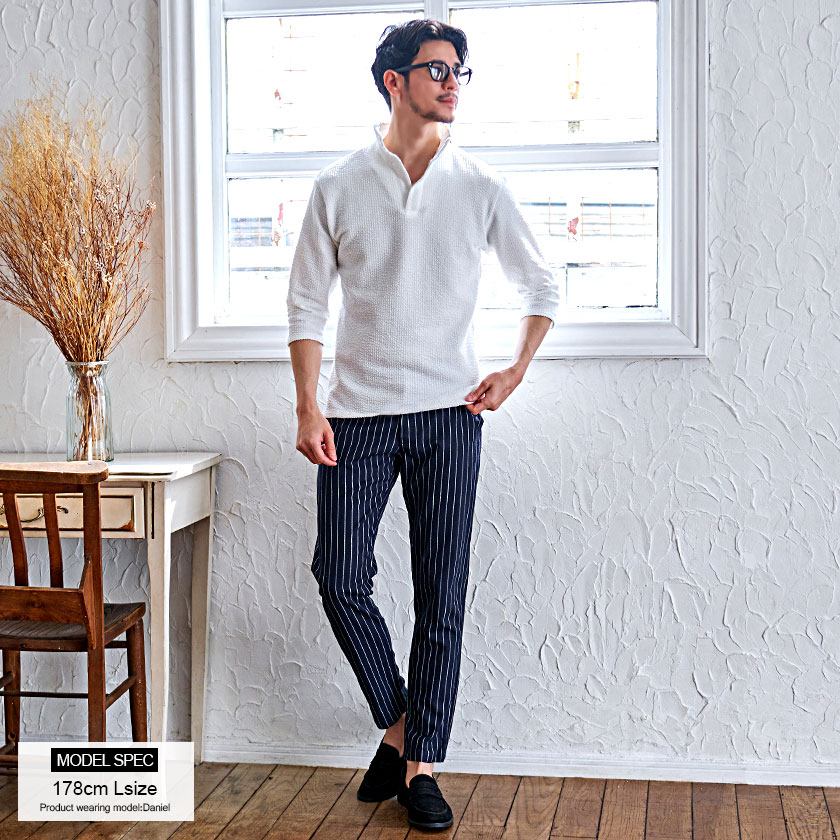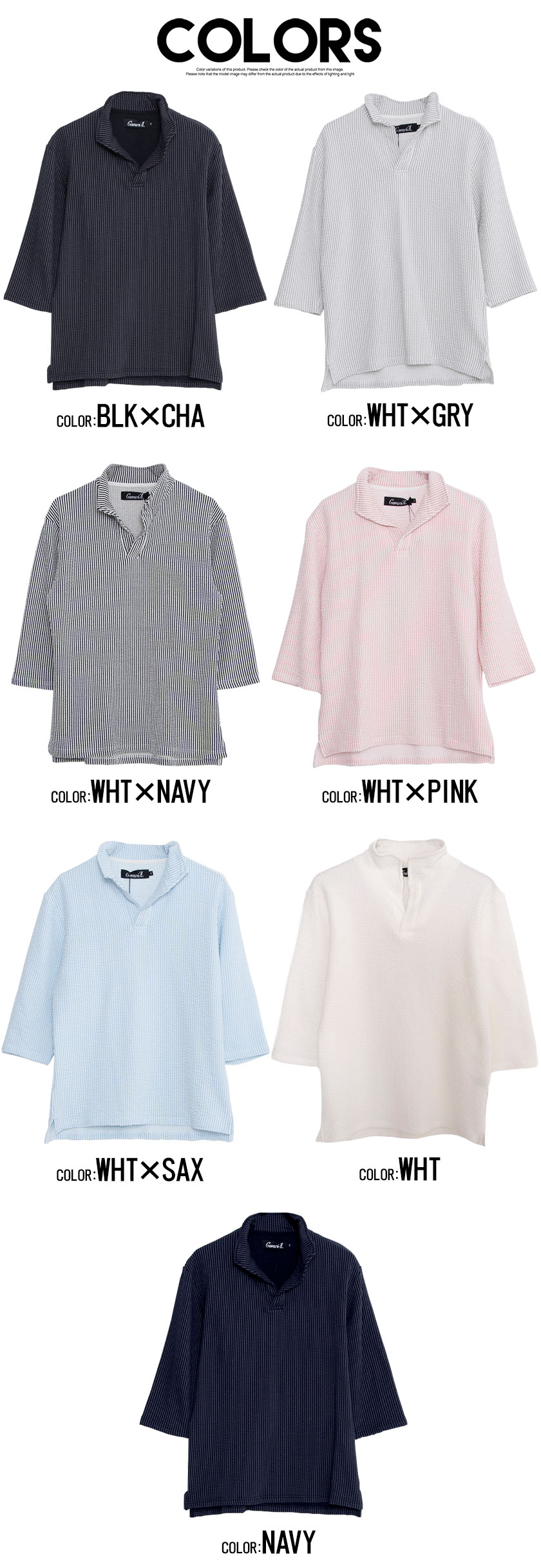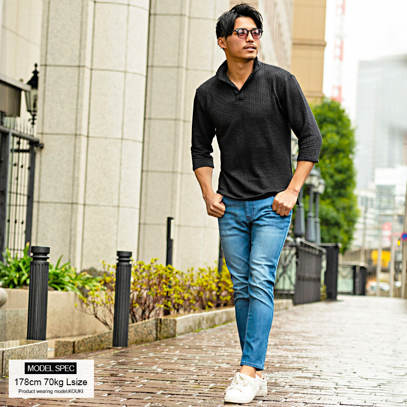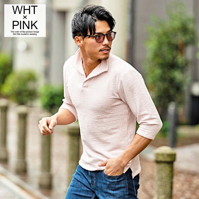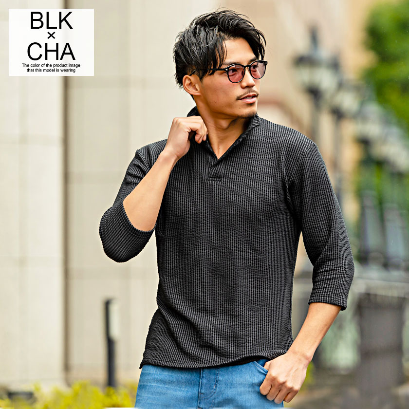 ポロシャツ メンズ ブランド おしゃれ 大人 カジュアル ファッション 7分袖 七分袖 シアサッカー イタリアンカラー 立襟 スキッパー ポロ 開襟 細身 タイト きれいめ きれい目 ゴルフウェア 父の日 ギフト 黒 白 M L XL 春 夏 CavariA 男性 男 服【郵】↑↑
