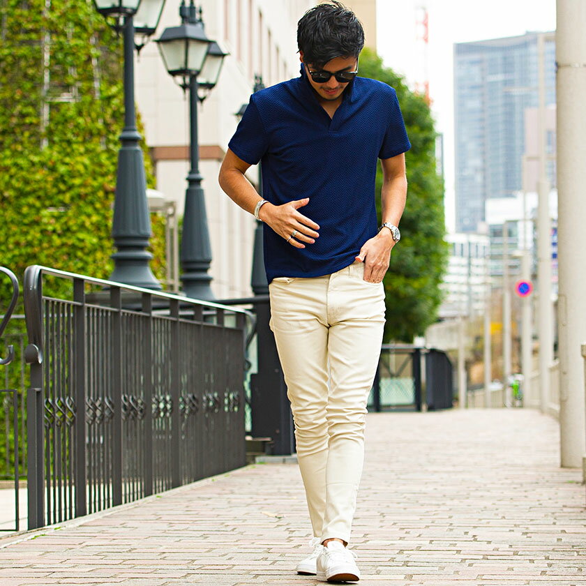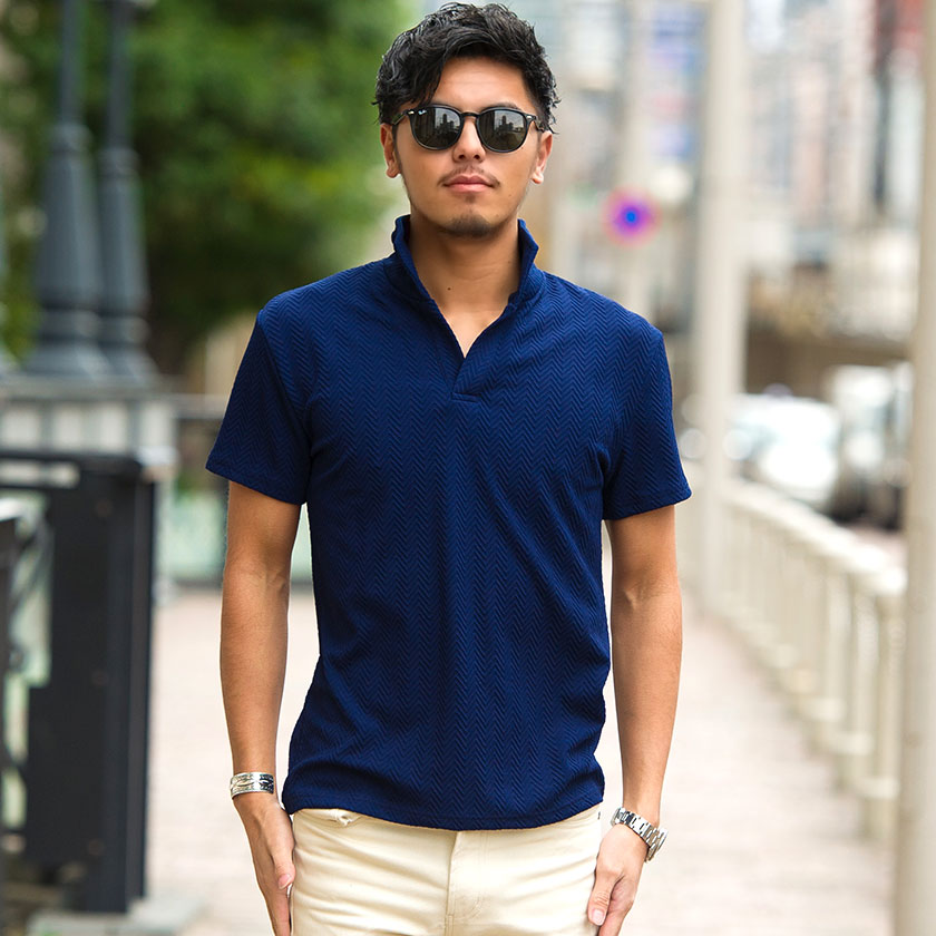 【送料無料】ポロシャツ メンズ おしゃれ 大人 きれいめ トップス へリンボーン イタリアンカラー M L XL ホワイト ネイビー ブラック プレゼント 父の日ギフト ゴルフ ゴルフウェア CavariA 服 父の日 春 夏 春服 夏服 ファッション メンズファッション↑↑