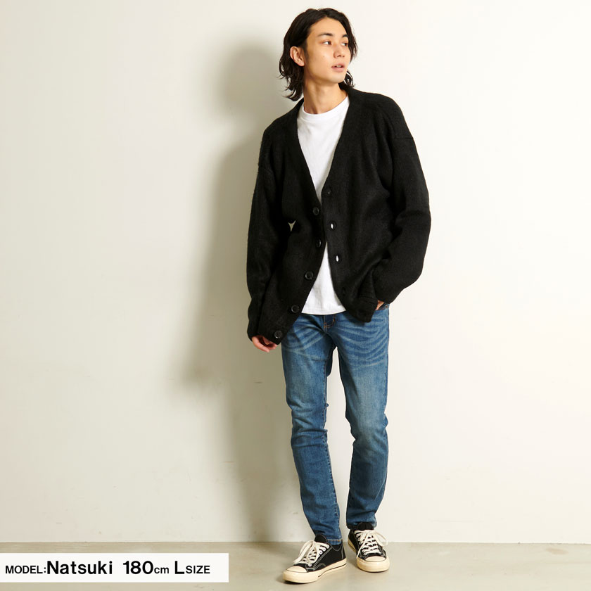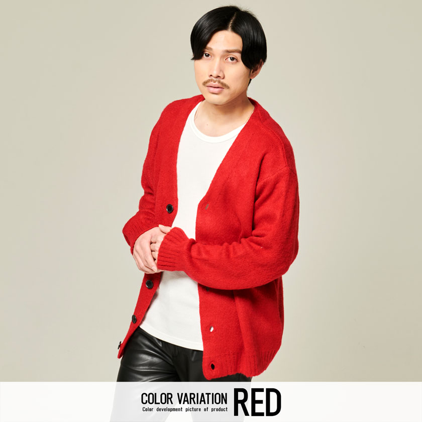 【送料無料】カーディガン メンズ 大きいサイズ ブランド オシャレ 大人 ビッグシルエット オーバーサイズ ゆったり 春 Vネック ブラック レッド 黒 赤 ユニセックス モヘア モヘヤ 無地 ニット 20代 30代 40代 ユニセックス 男性 男 服 秋 冬 秋冬 秋服 ファッション