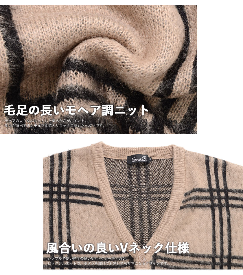 【送料無料】カーディガン メンズ 厚手 オーバーサイズ 大人 アウター 大きいサイズ ニット モヘア モヘヤ ジャガード モコモコ 暖かい シンプル 無地 モヘアカーディガン ベージュ ブラック 黒 ユニセックス 秋 冬 秋冬 CavariA 20代 30代 40代 男 男性 ファッション