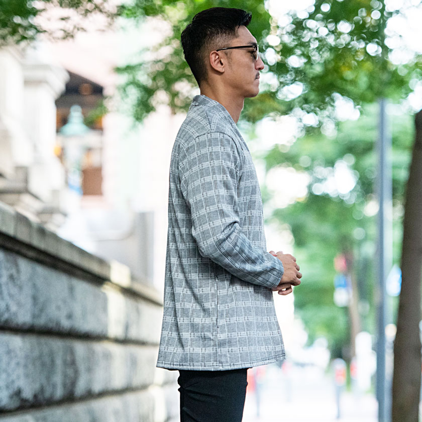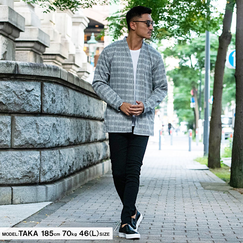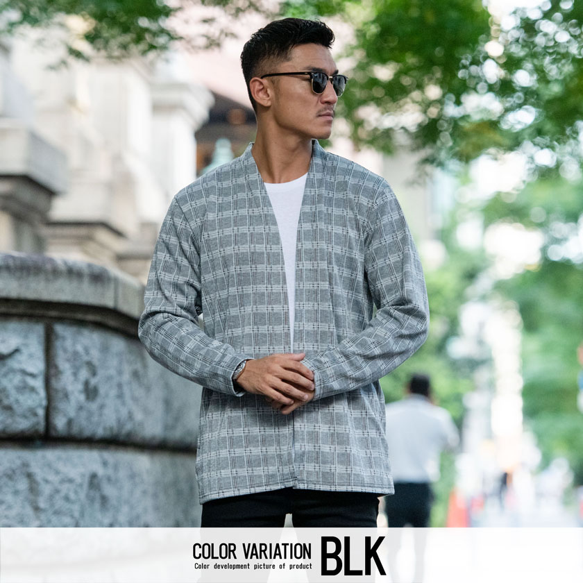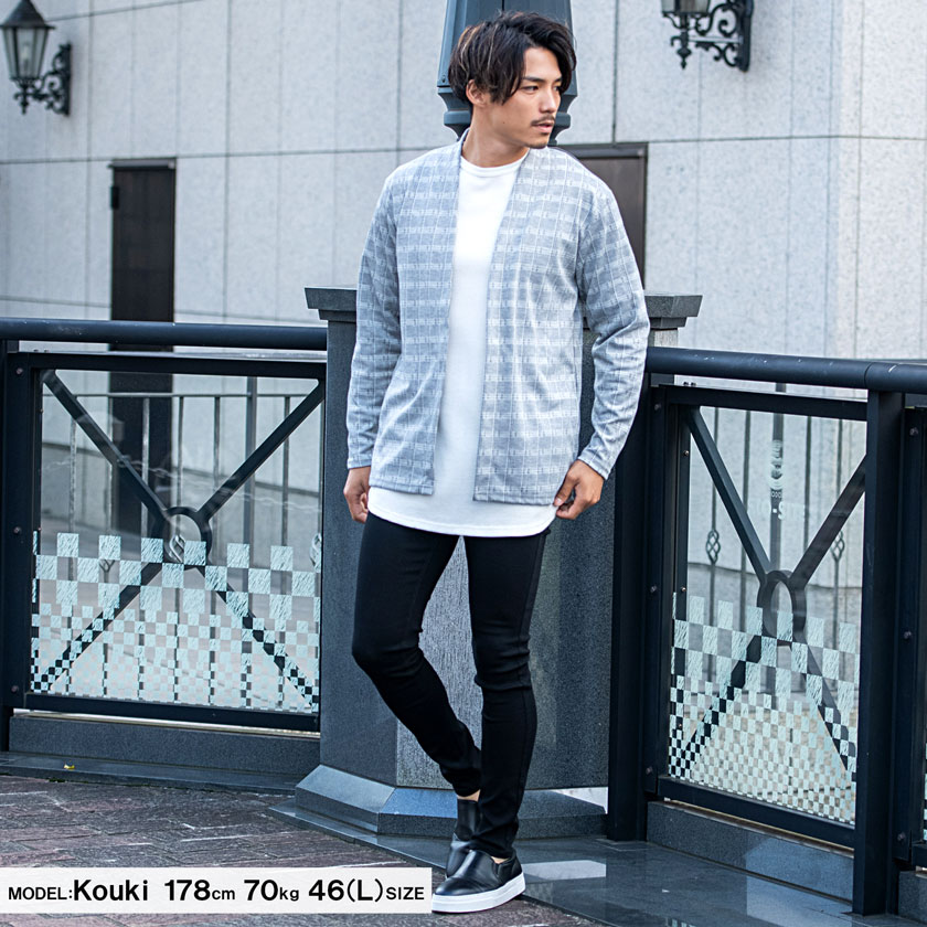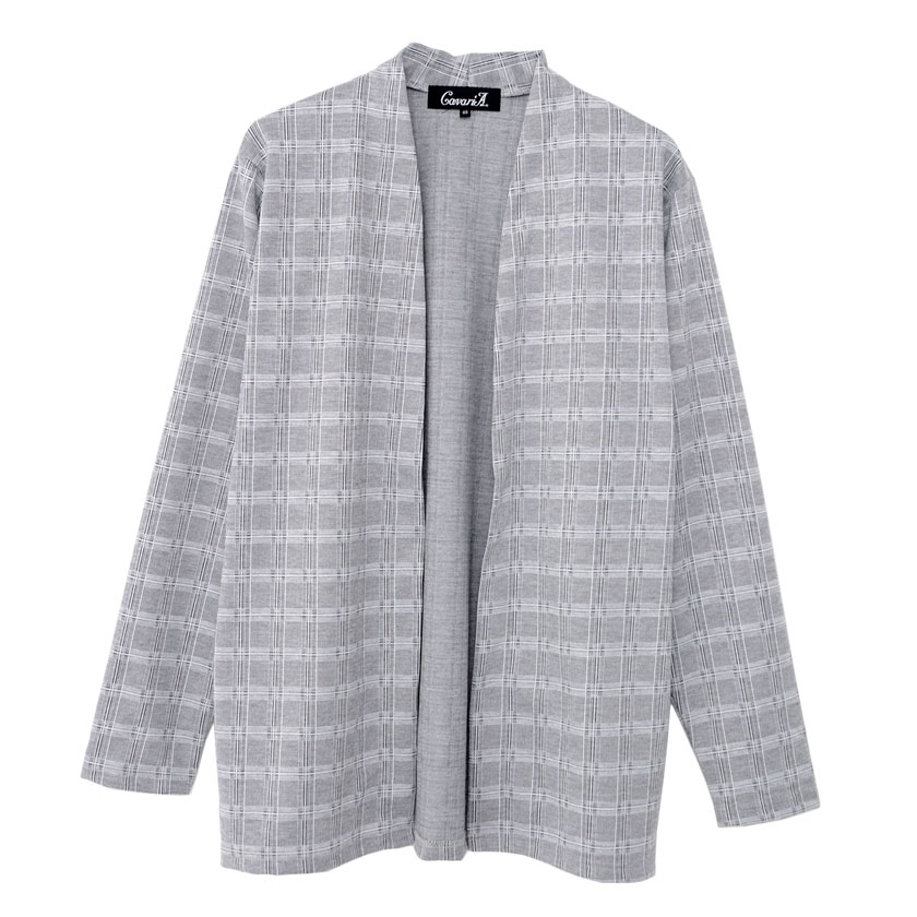 【送料無料】カーディガン メンズ ブランド 大人 チェック シンプル ノーカラー ボタンレス アウター きれいめ ショールカラー ショールガウン ガウン 長袖 ファッション グレー ブラック おしゃれ 秋 冬 秋冬 CavariA 20代 30代 40代 メンズファッション↑