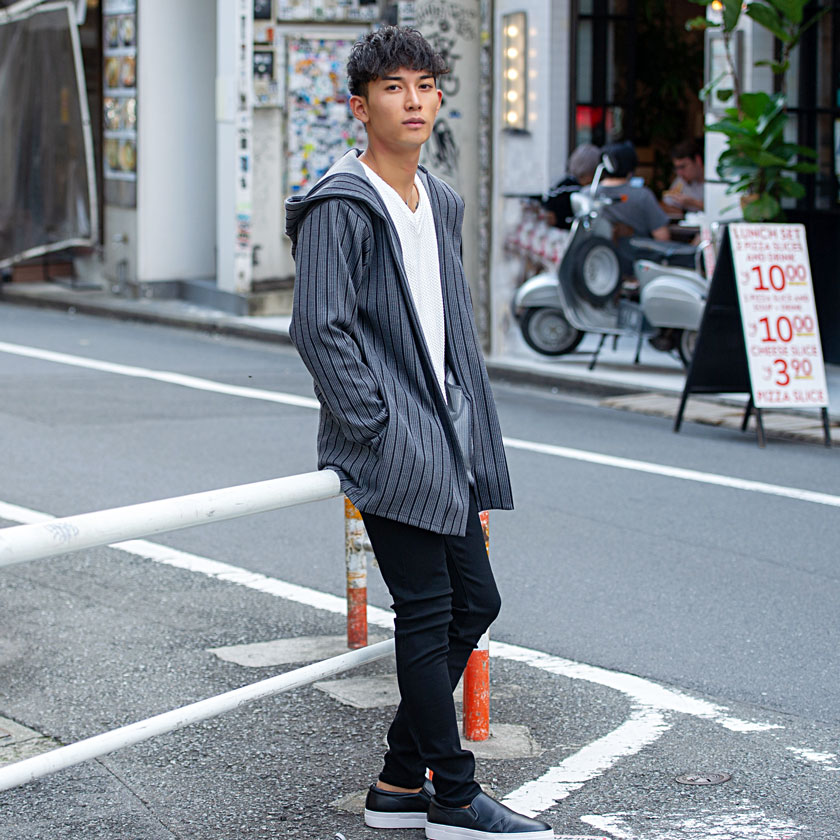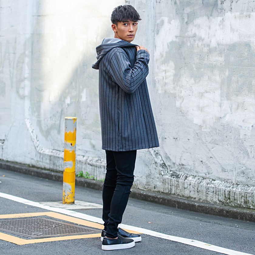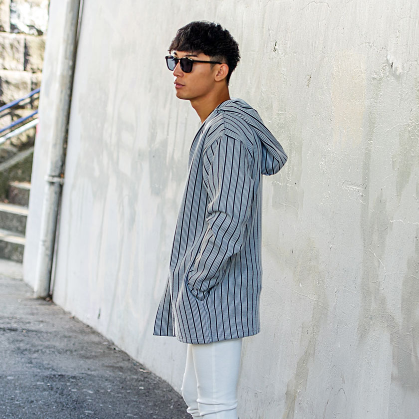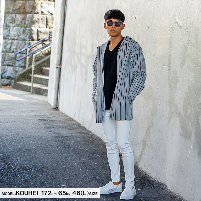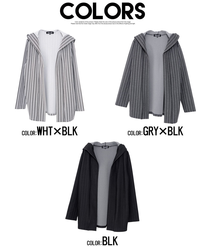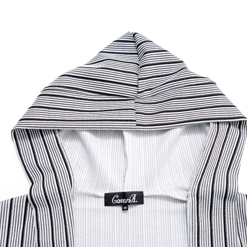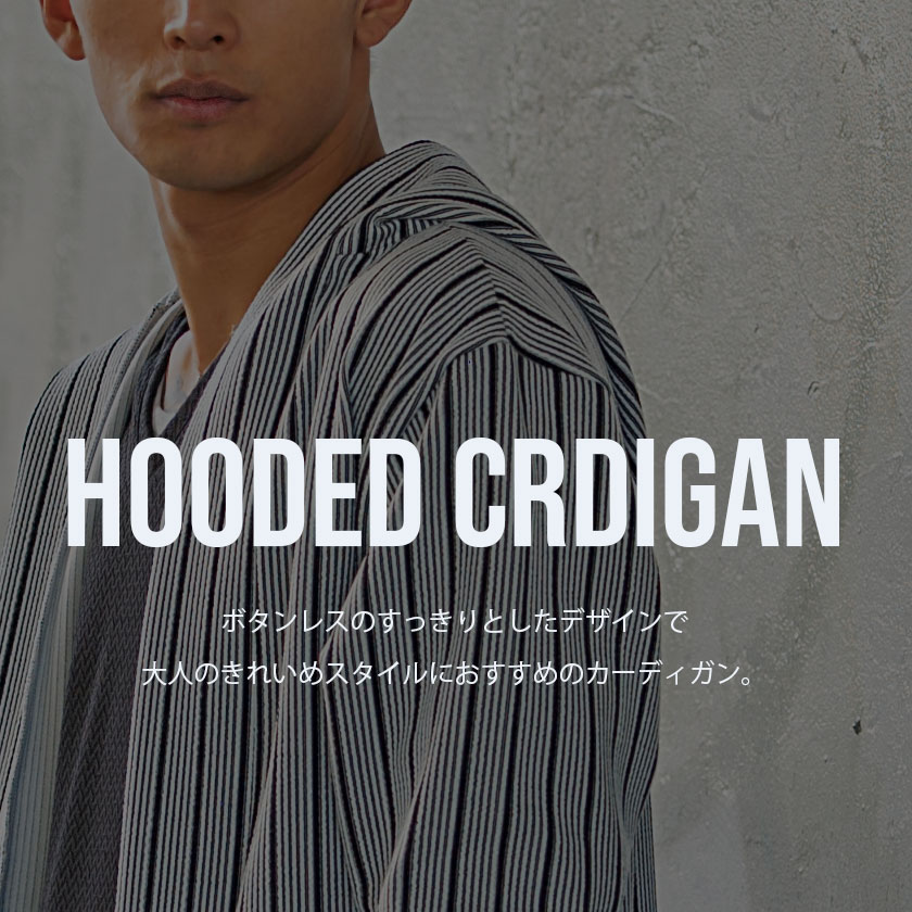 【送料無料】カーディガン メンズ おしゃれ フード フーディー ボタンレス ストライプ シンプル アウター 羽織り 防寒 きれいめ カジュアル ファッション 秋 冬 秋冬 ブラック グレー ホワイト 白 黒 男 男性 CavariA 20代 30代 40代 メンズファッション↑