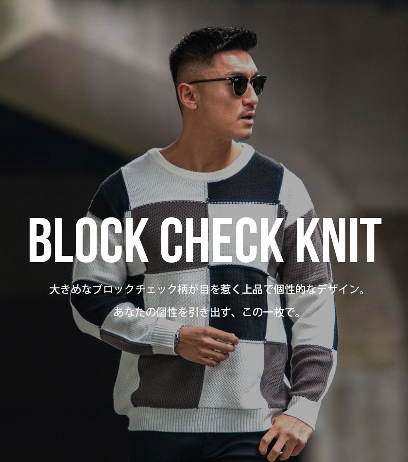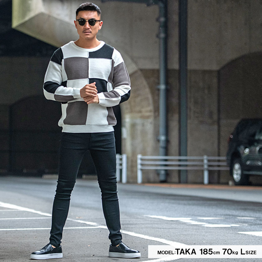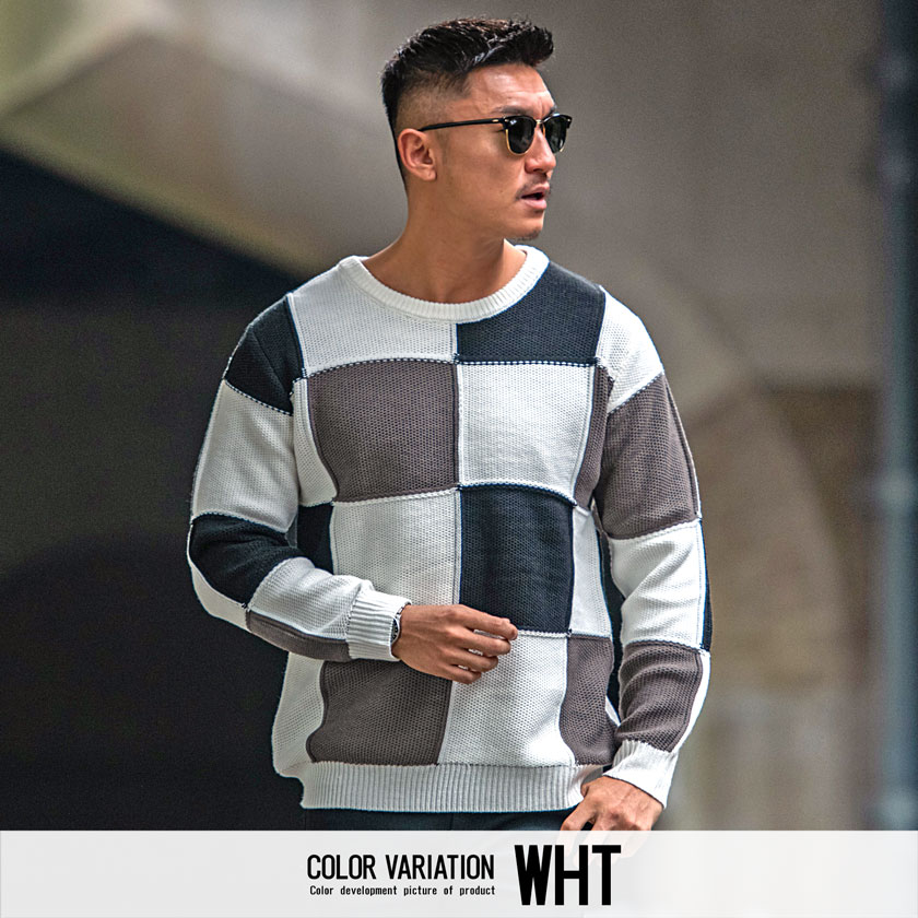 【送料無料】ニット メンズ セーター ブランド 大人 おしゃれ 5G ブロックチェック チェック きれいめ 防寒 暖かい シンプル ホワイト ベージュ ブラック 黒 春 秋 冬 プレゼント ストリート カジュアル M L XL CavariA 20代 30代 40代 メンズファッション↑