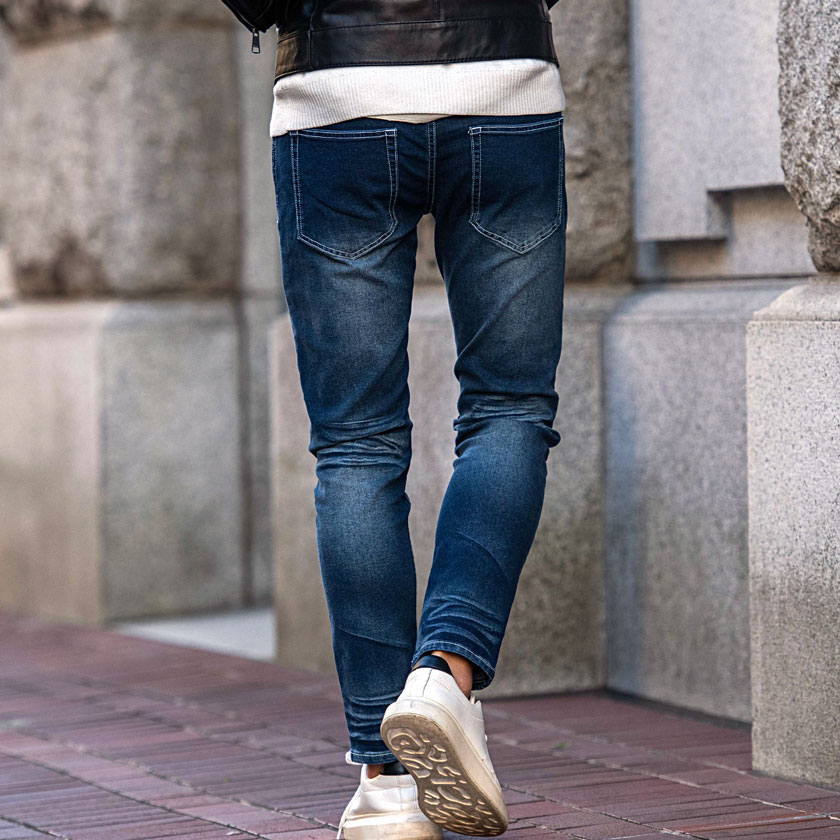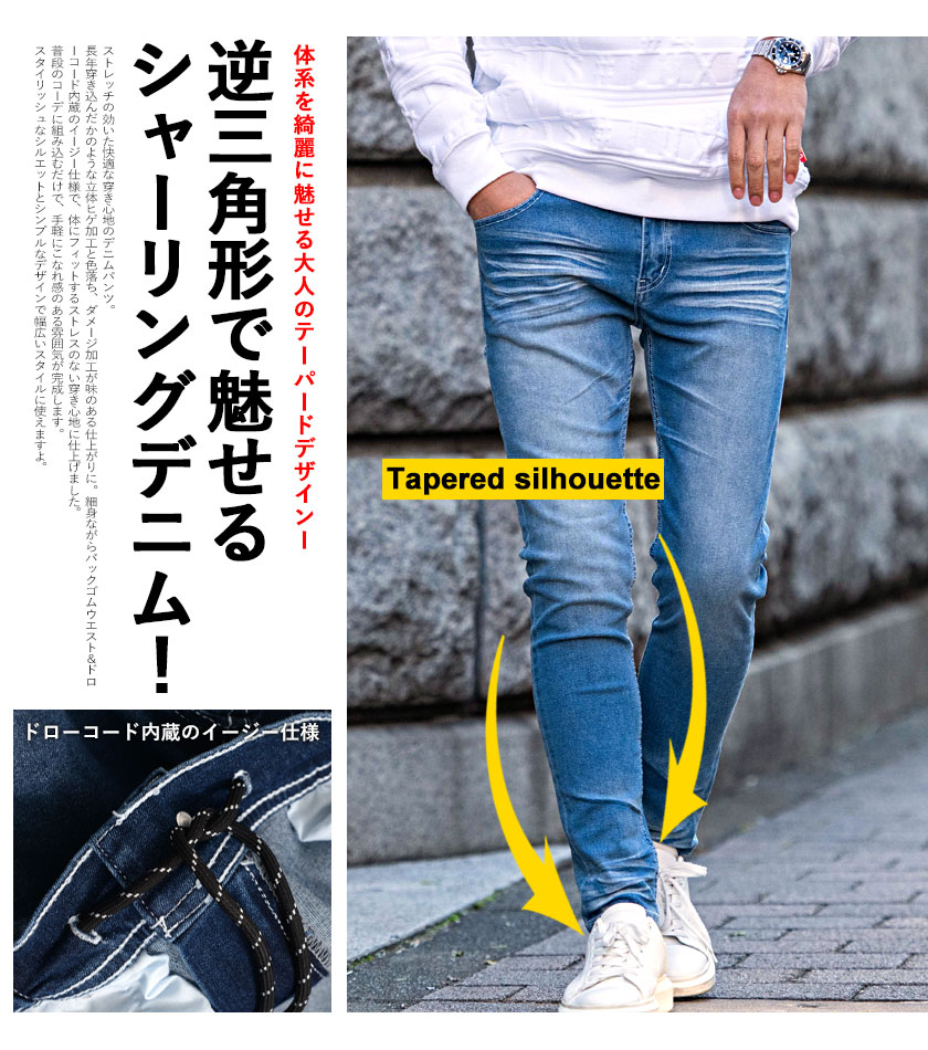 【送料無料】デニムパンツ メンズ ジーンズ おしゃれ 大人 ジーパン Gパン ボトムス ストレッチ テーパード 細身 スリム ヴィンテージ ビンテージ タイト ネイビー ブルー カジュアル CavariA 服 父の日 春 夏 秋 冬 秋冬 ファッション メンズファッション↑