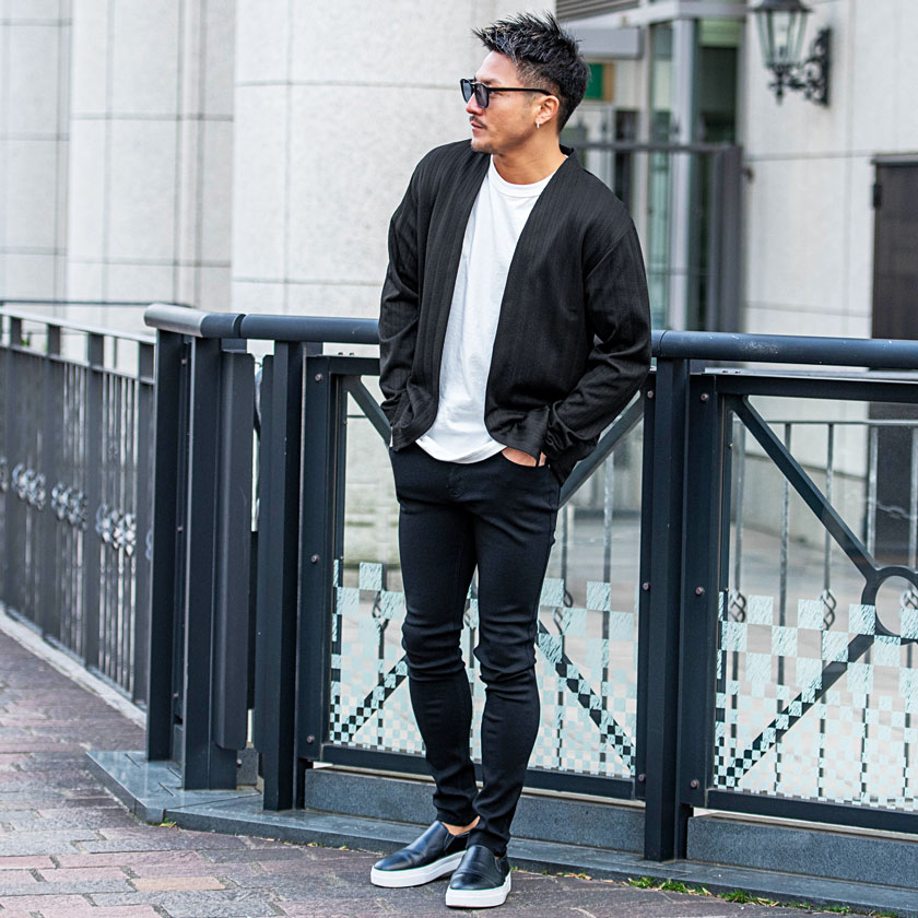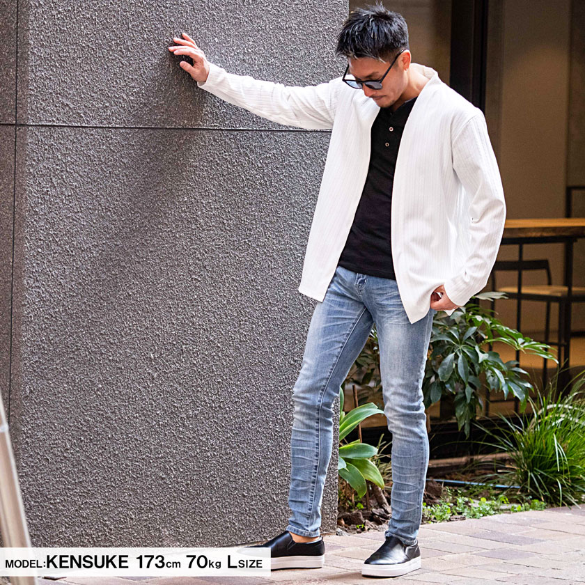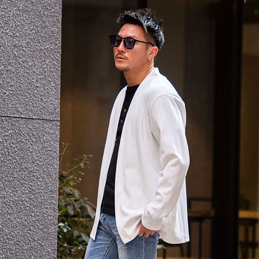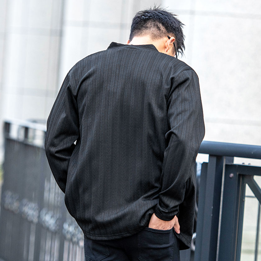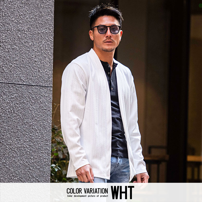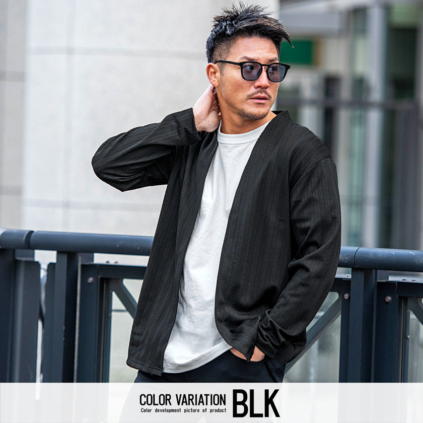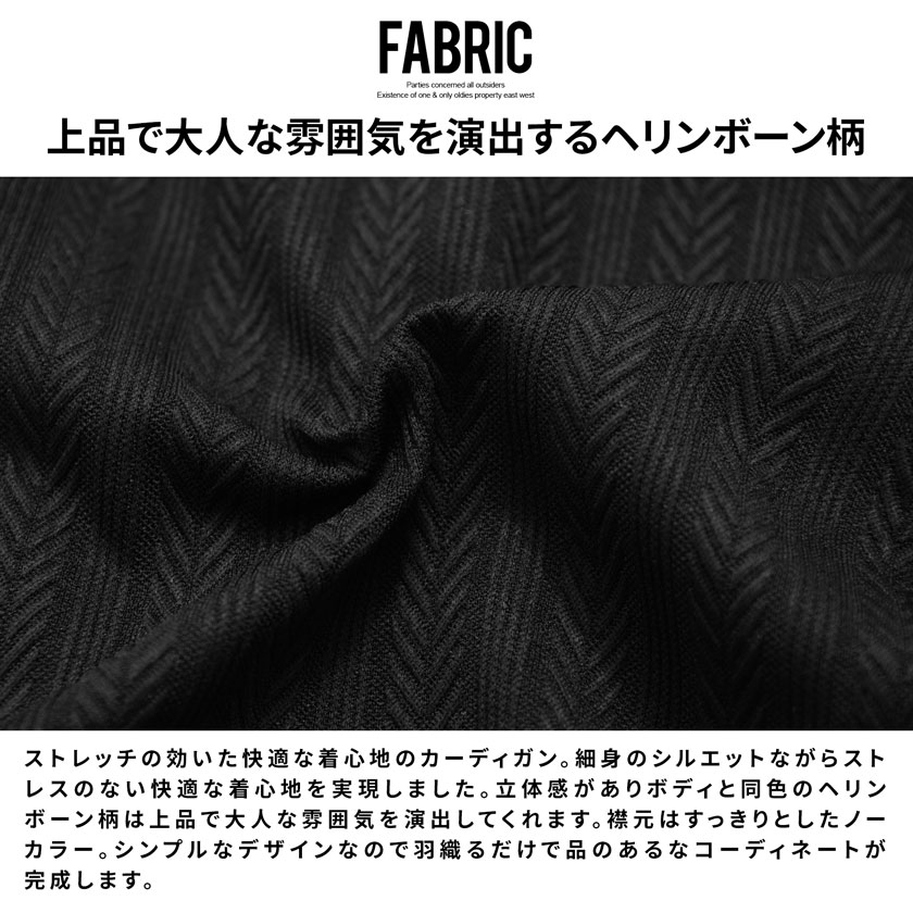 【送料無料】カーディガン メンズ おしゃれ 大きいサイズ 服 ヘリンボーン 総柄 アウター 長袖 シンプル ストレッチ ノーカラー ブランド ブラック ホワイト 白 M L XL LL カジュアル きれいめ 男 男性 秋 冬 秋冬 CavariA ファッション メンズファッション↑
