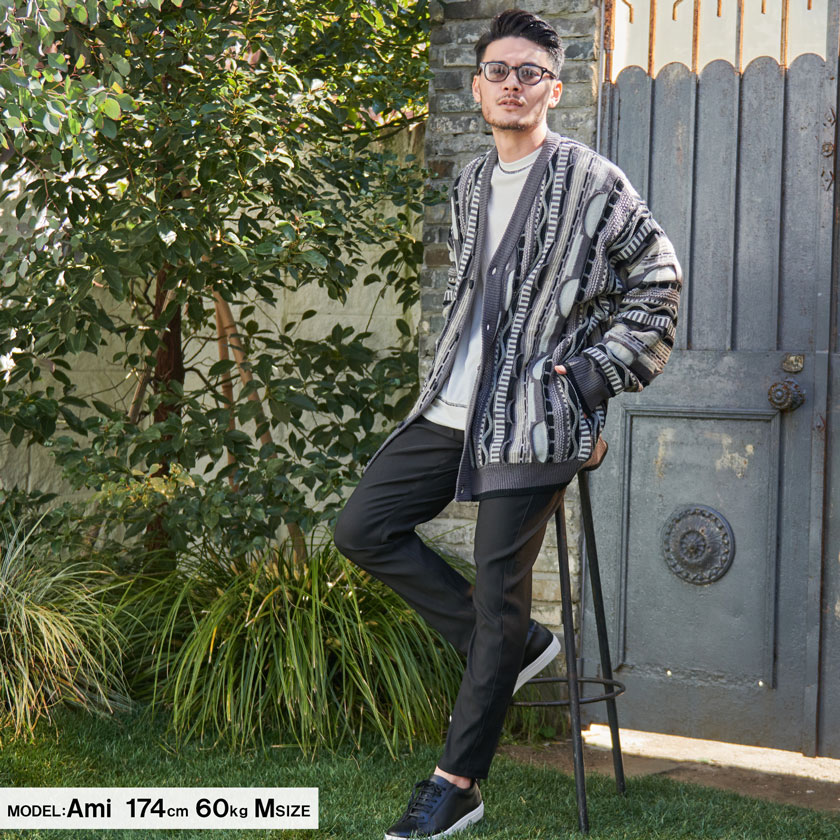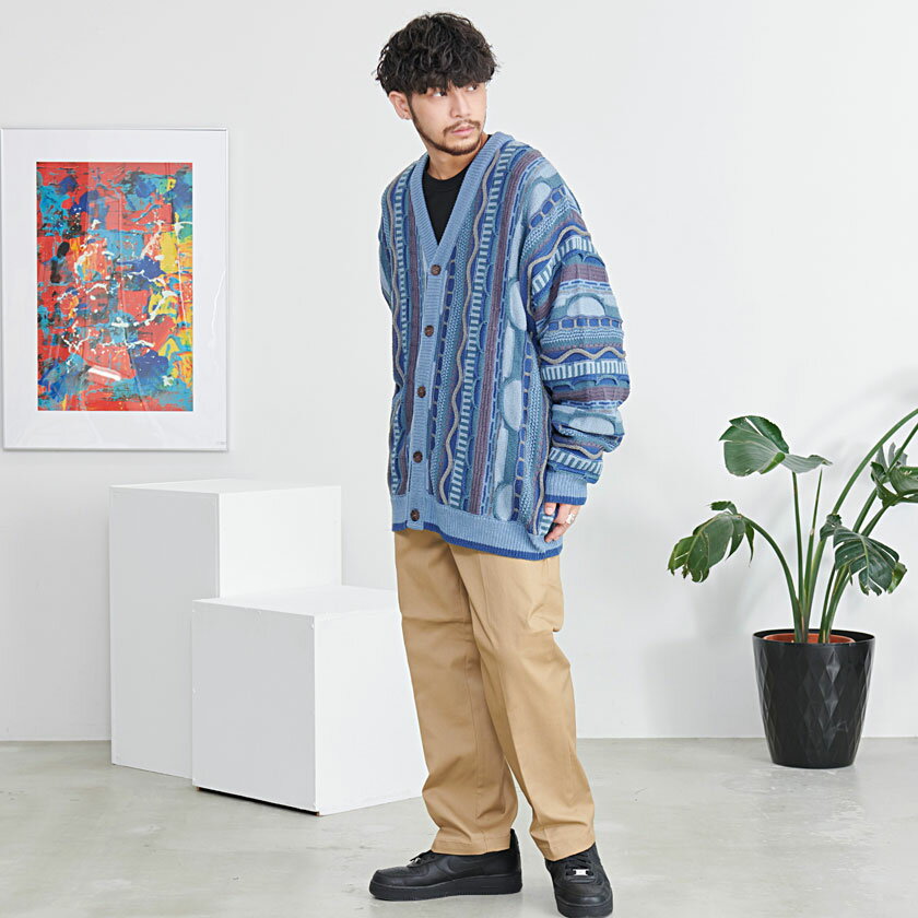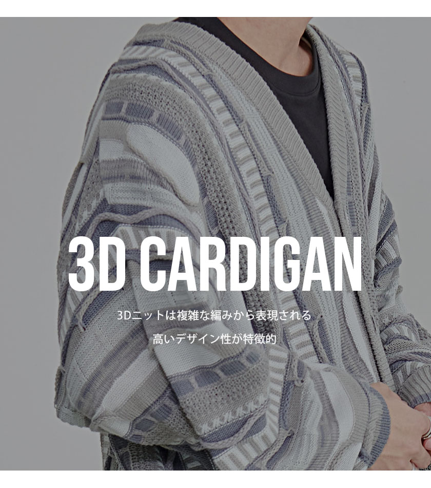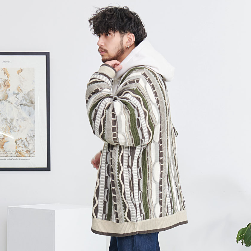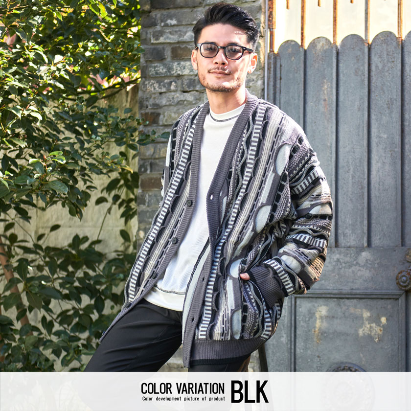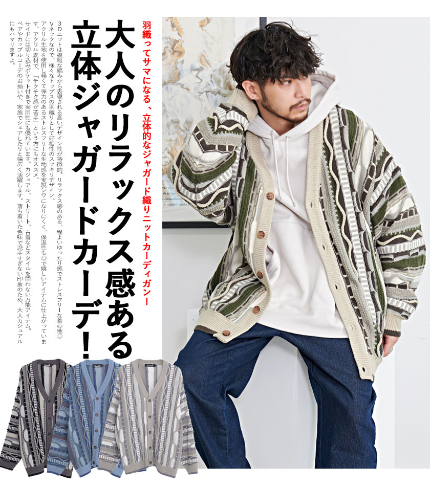【送料無料】カーディガン メンズ おしゃれ ジャケット 大人 大きいサイズ ニット ジャガード 編み アウター セーター 立体 3D Vネック UV対策 バルーンスリーブ CavariA ユニセックス 服 父の日 秋 冬 秋冬 カジュアル ファッション メンズファッション↑↑
