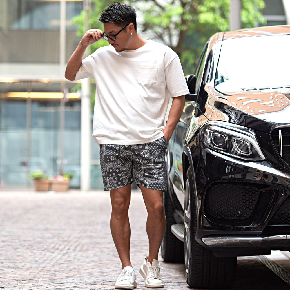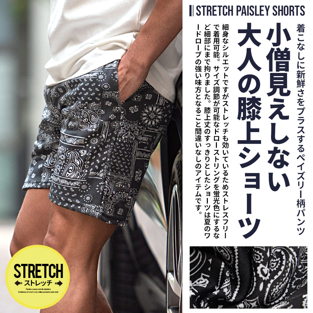 ハーフパンツ メンズ ショートパンツ 短パン ショーツ おしゃれ バンダナ柄 ペイズリー柄 膝上 総柄 ひざ上 カジュアル ブラック チャコール 黒 M L XL 大人 アウトドア レジャー CavariA 服 ユニセックス 男 男性 父の日 春 夏 春服 夏服 ファッション【あす楽対応】↑↑