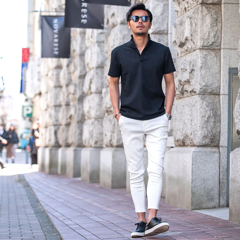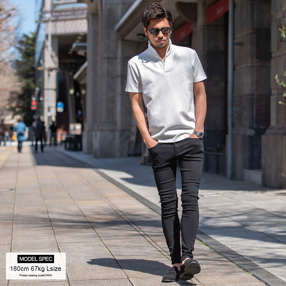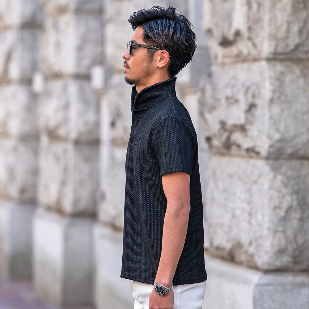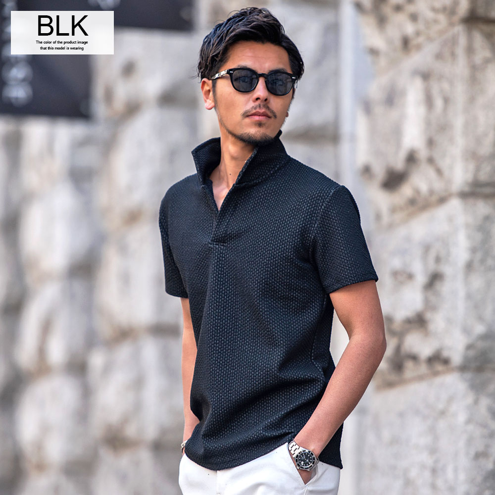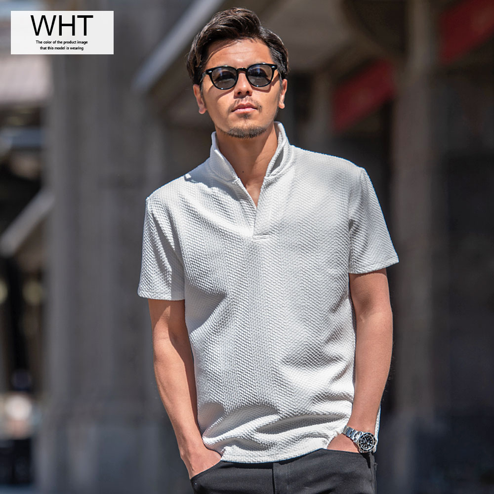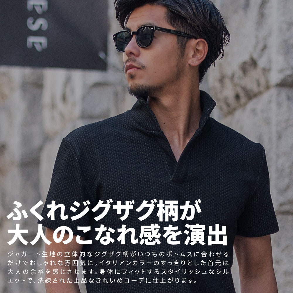 【送料無料】ポロシャツ メンズ ブランド おしゃれ 半袖 トップス ゴルフウェア カットソー インナー スキッパー イタリアンカラー 立ち襟 ジャガード 無地 細身 スリム タイト ストレッチ 白 ビジネス カジュアル 服 春 夏 春夏 父の日 ファッション【郵】↑