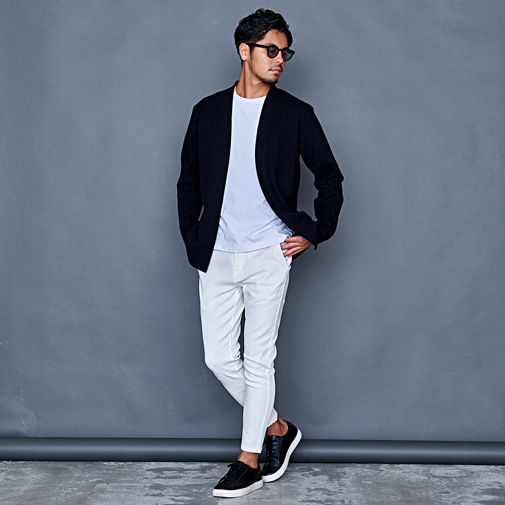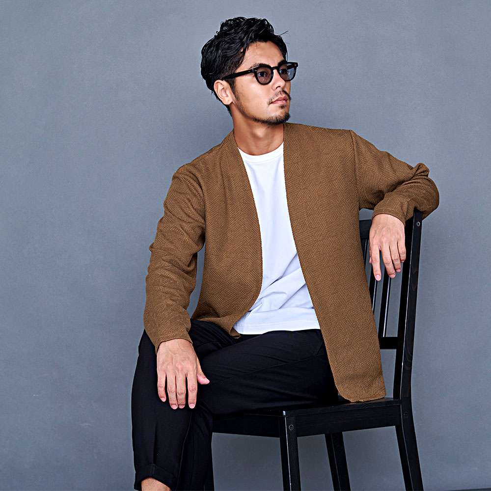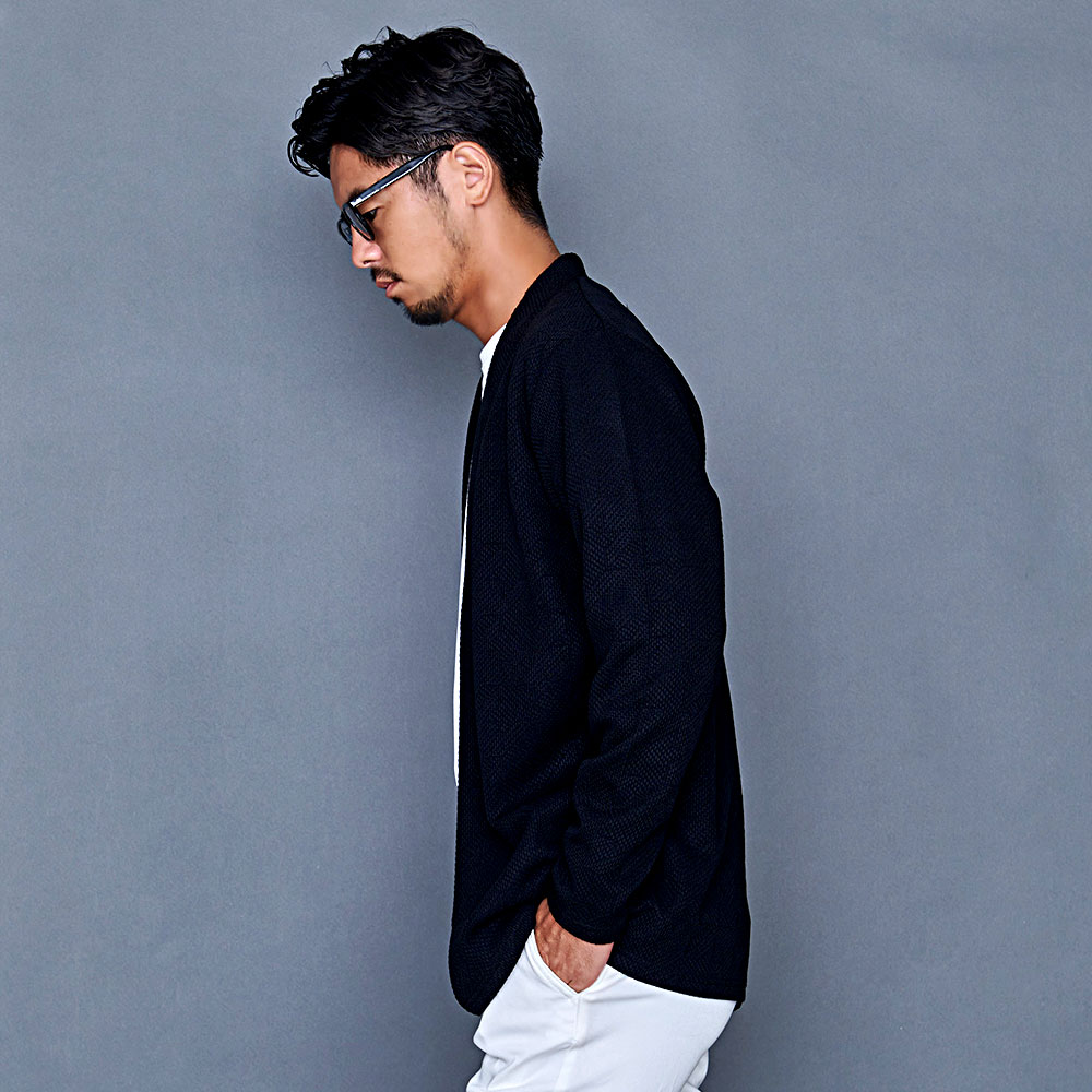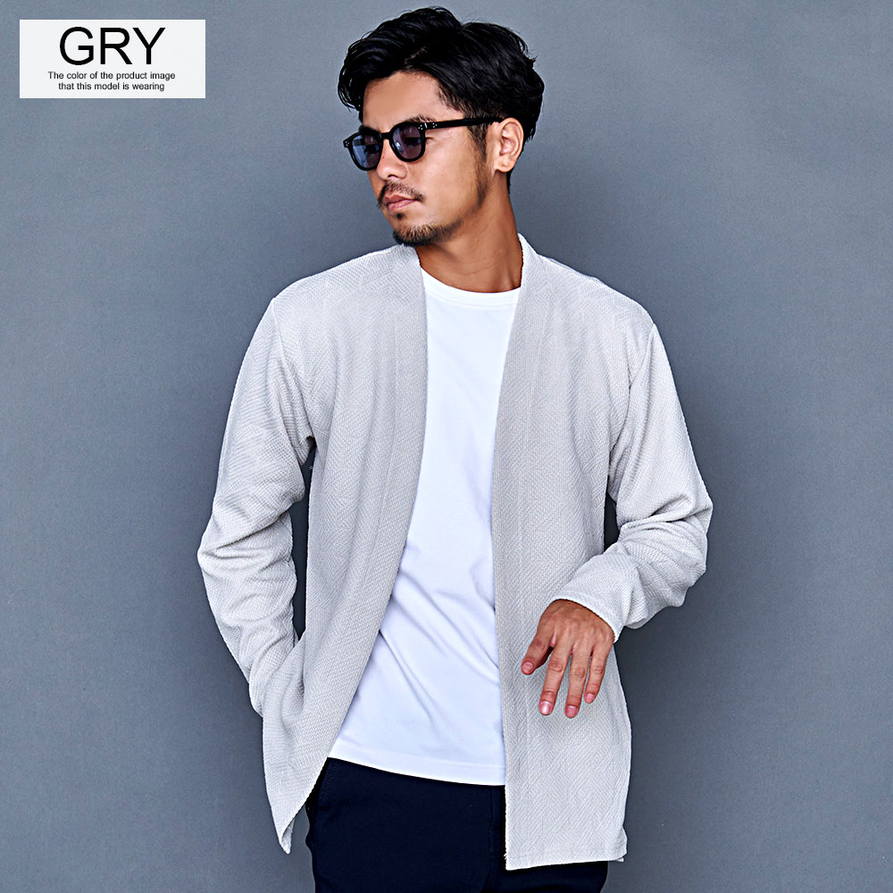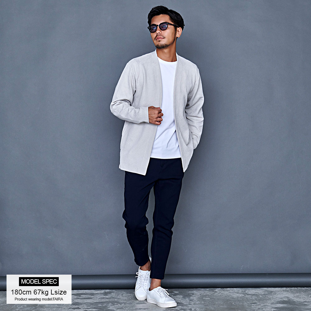 【送料無料】カーディガン メンズ アウター おしゃれ 長袖 千鳥柄 ノーカラー ボタンレス 細身 タイト グレー ブラウン ブラック 茶色 黒 M L XL LL CavariA ブランド カジュアル シンプル 無地 きれいめ 大人 ストレッチ 伸縮 秋 冬 秋服 羽織り 男 男性 服 20代 30代 40代