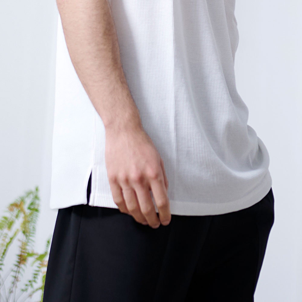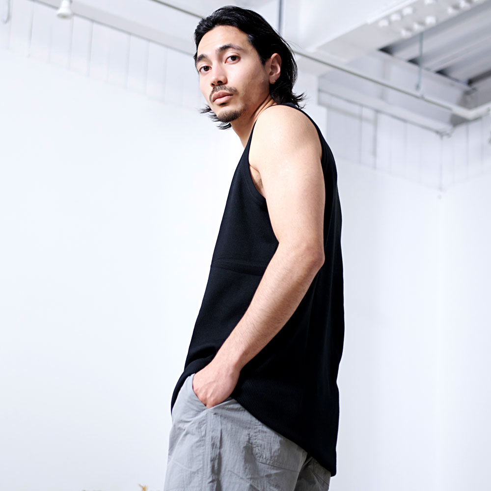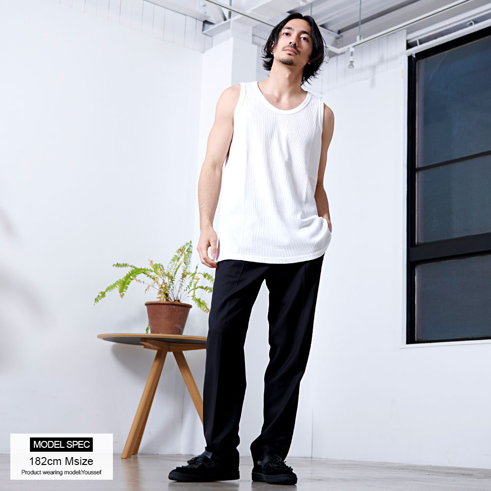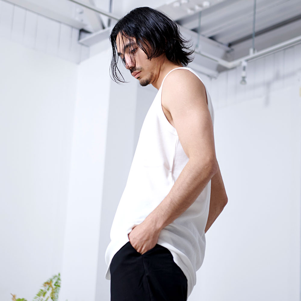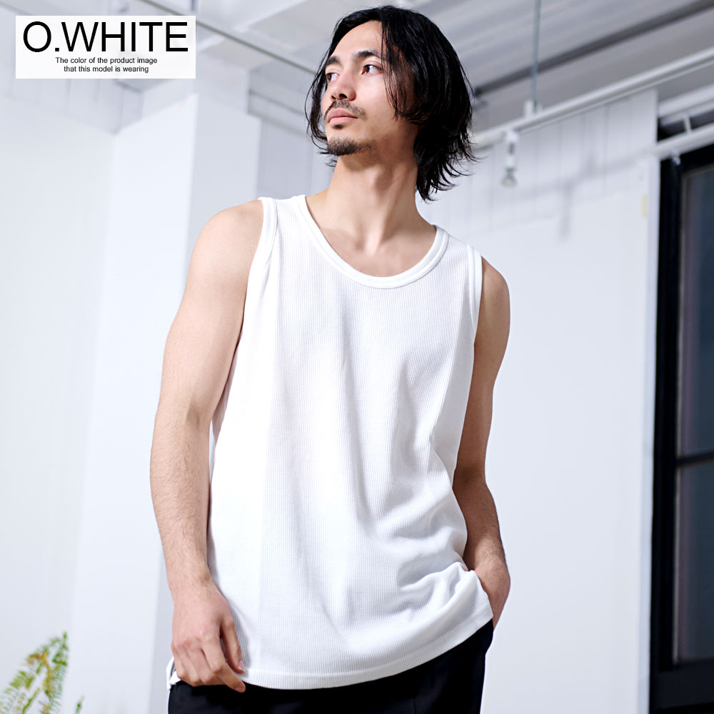 タンクトップ メンズ おしゃれ トレーニング 筋トレ ワッフル サーマル ノースリーブ 無地 ロング丈 スリット レイヤード 重ね着 インナー クルーネック ストレッチ 伸縮 スリム ホワイト 白 黒 M L XL LL おしゃれ シンプル 大人 男性 大人 20代 30代 40代 男性 男 服 春 夏