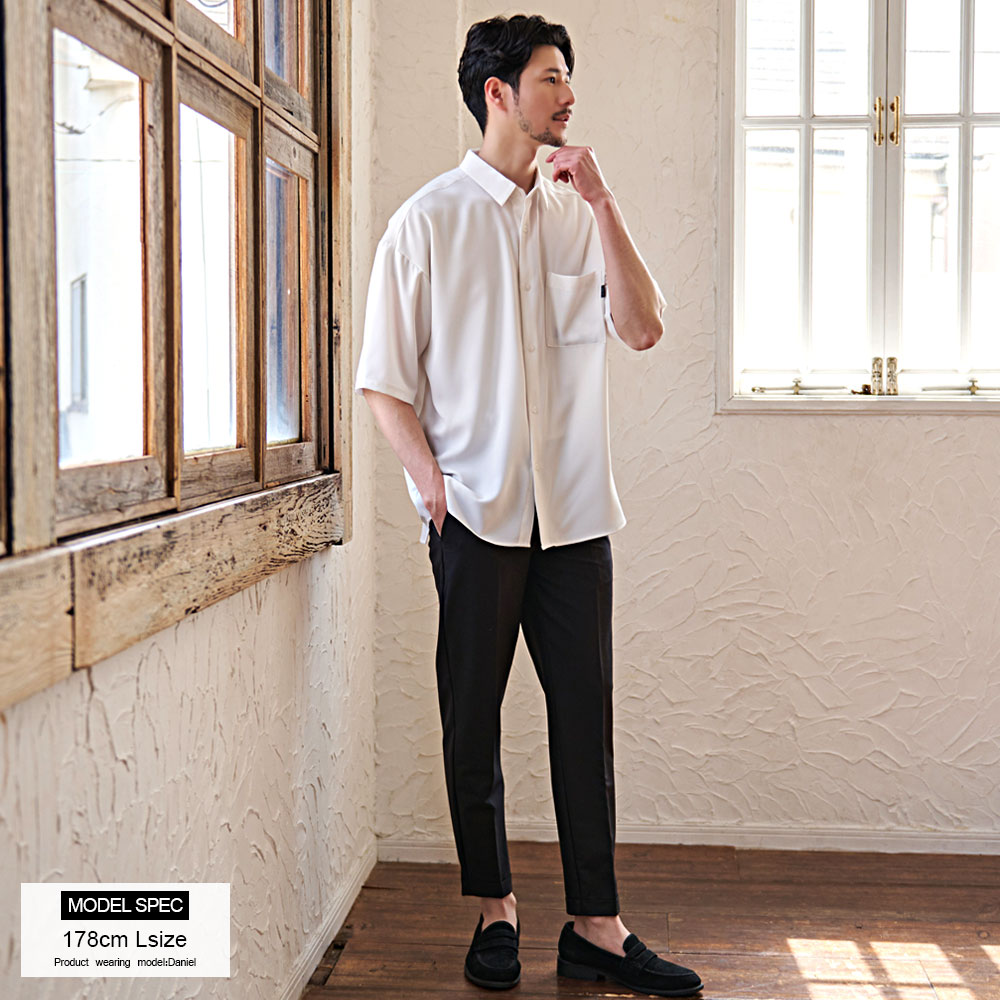 【送料無料】シャツ メンズ 半袖シャツ ブランド 接触冷感 涼しい ストレッチ 伸縮性 半袖 おしゃれ 大きいサイズ シンプル 無地 大人 イージーケア 白シャツ ブラック 黒 ホワイト 白 ゆったり 20代 30代 40代 ユニセックス 男性 男 服 春 夏 夏服 春夏 ファッション↑