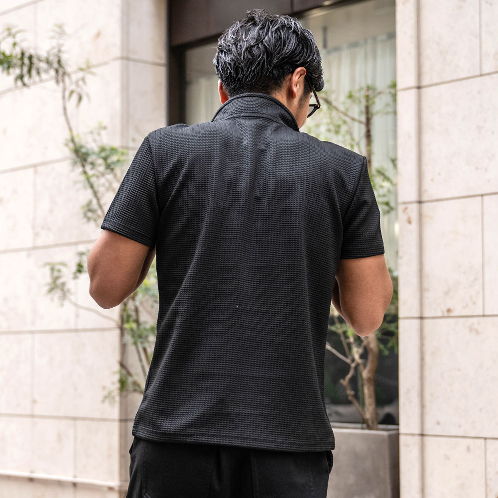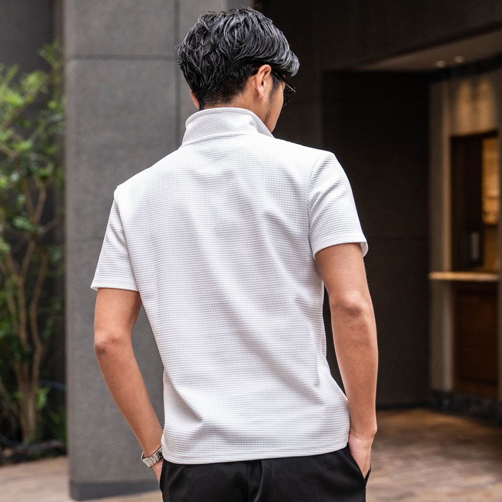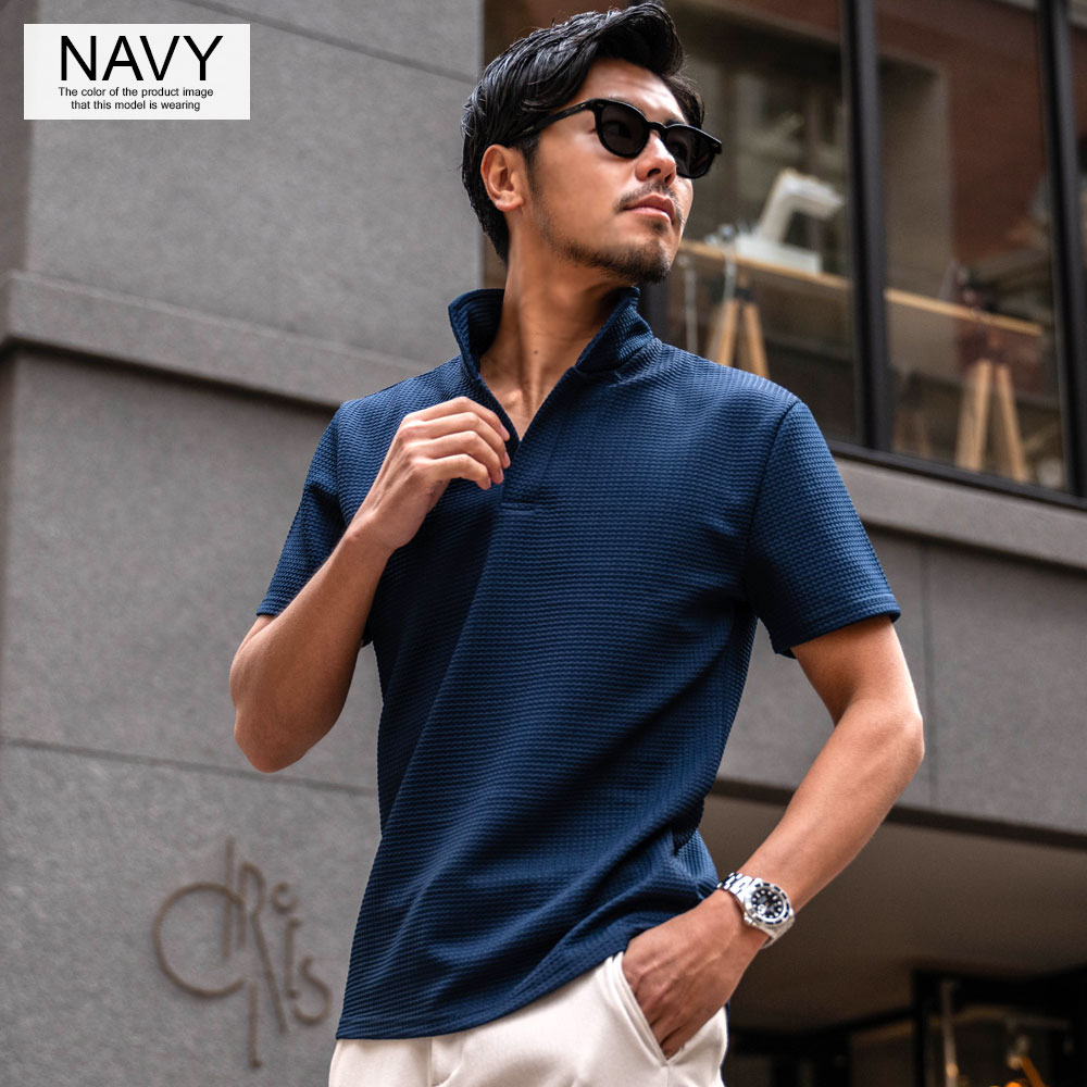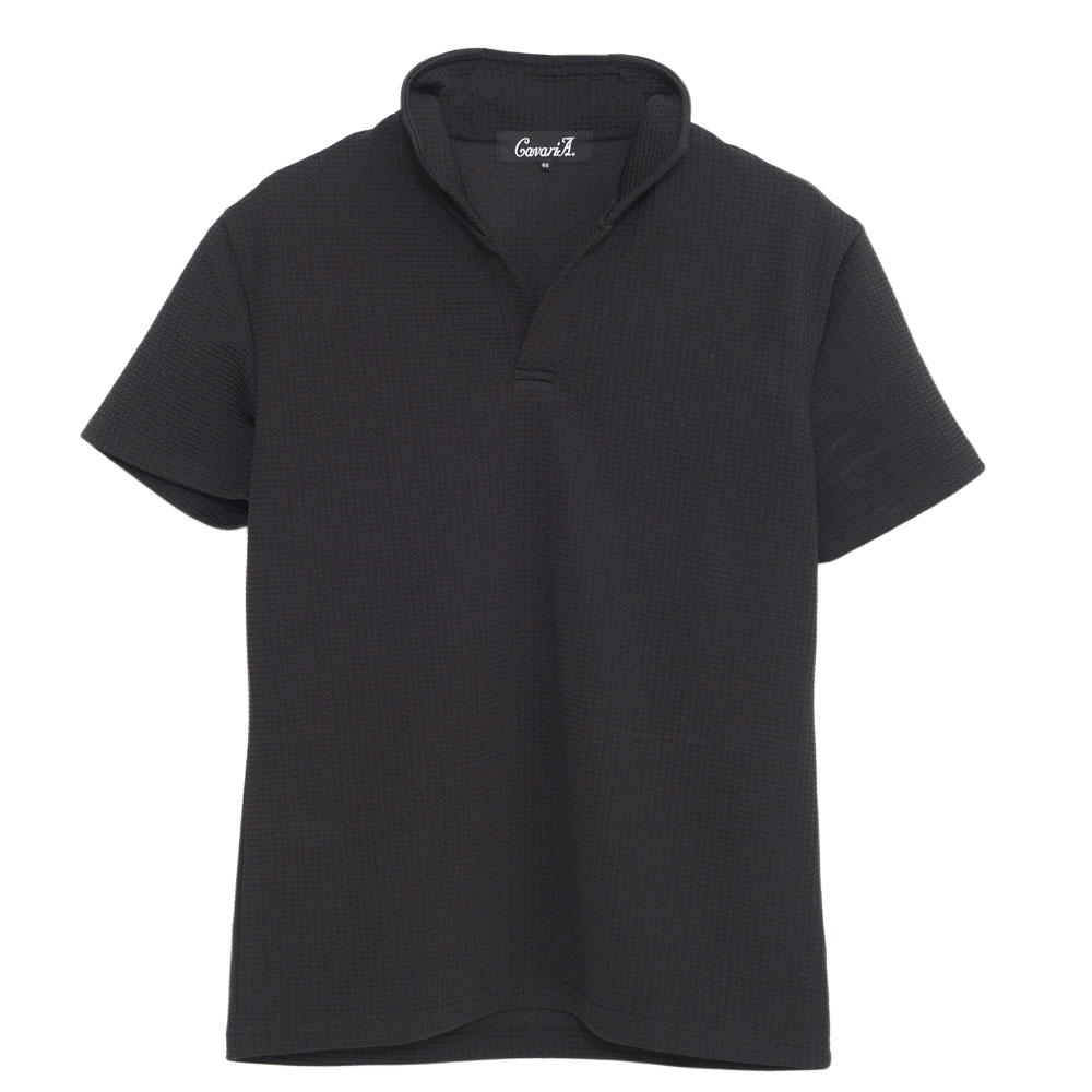 【送料無料】ポロシャツ メンズ 半袖 ブランド 半袖ポロシャツ ゴルフ ゴルフウェア シンプル 無地 大人 ワッフル生地 スキッパーポロ 立ち襟 イタリアンカラー ホワイト ネイビー ブラック CavariA 20代 30代 40代 ユニセックス 男性 男 服 春 夏 夏服 春夏 ファッション