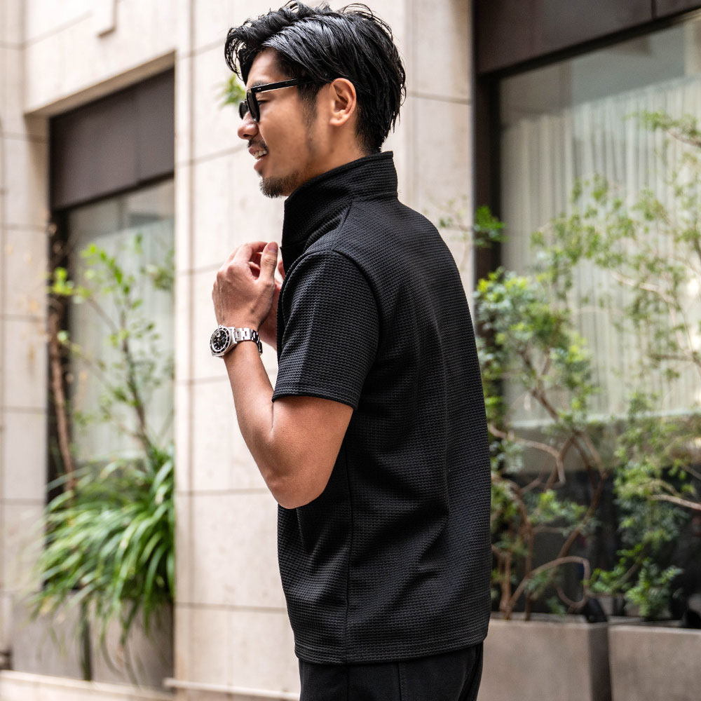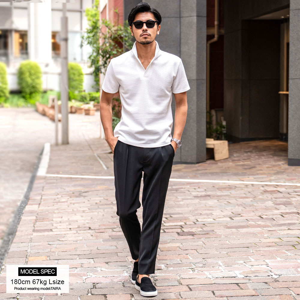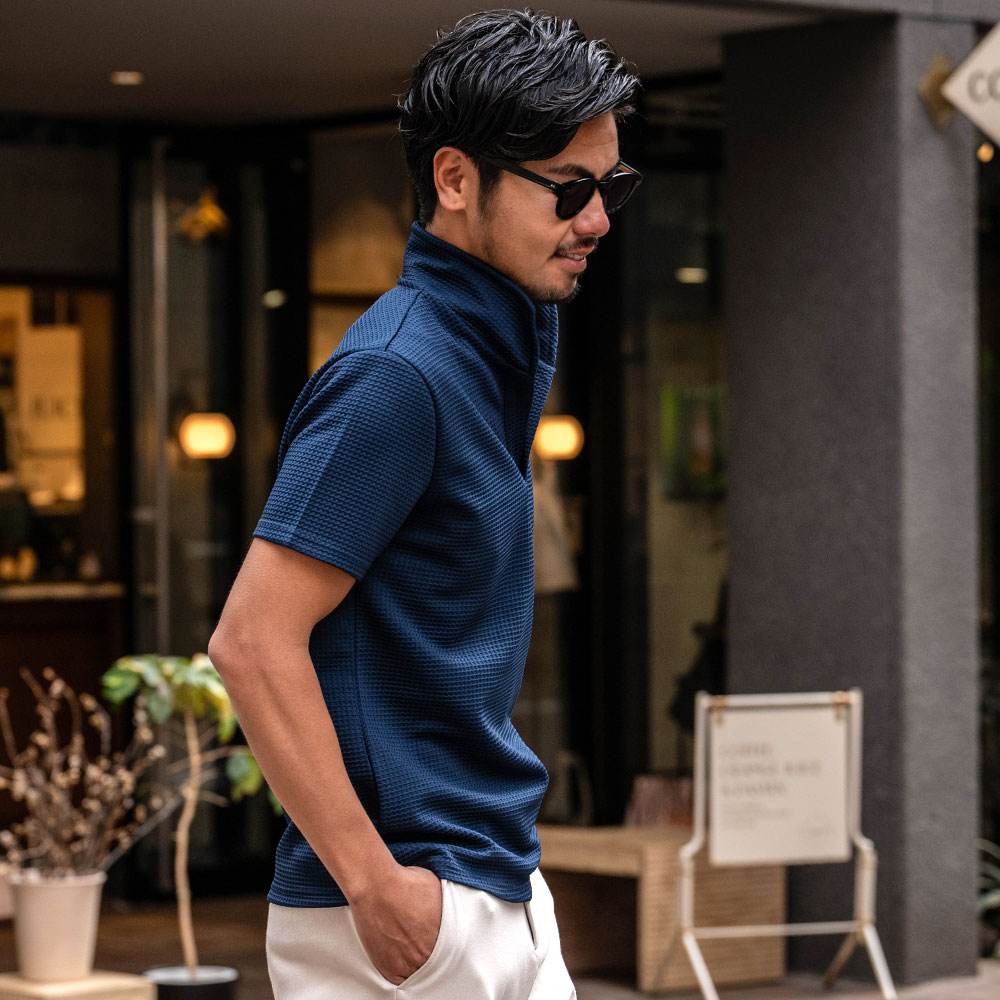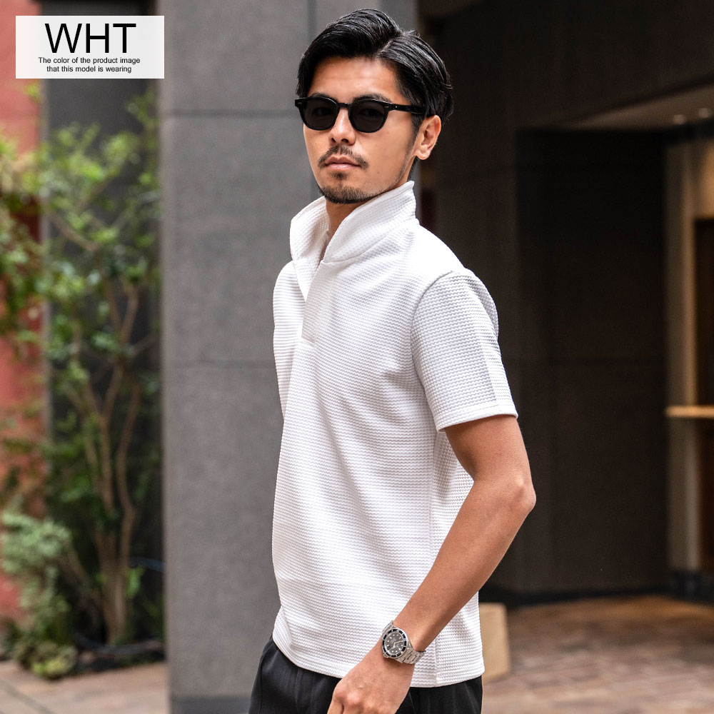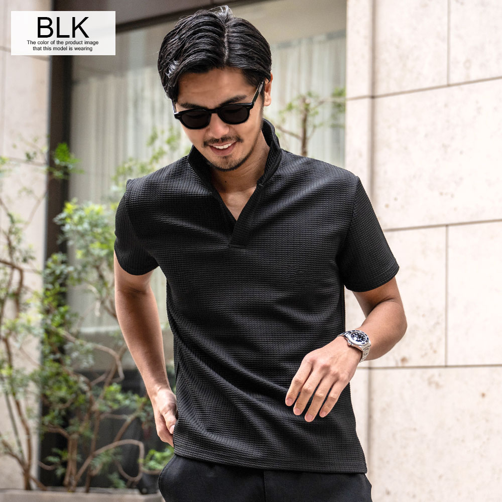 【送料無料】ポロシャツ メンズ 半袖 ブランド 半袖ポロシャツ ゴルフ ゴルフウェア シンプル 無地 大人 ワッフル生地 スキッパーポロ 立ち襟 イタリアンカラー ホワイト ネイビー ブラック CavariA 20代 30代 40代 ユニセックス 男性 男 服 春 夏 夏服 春夏 ファッション