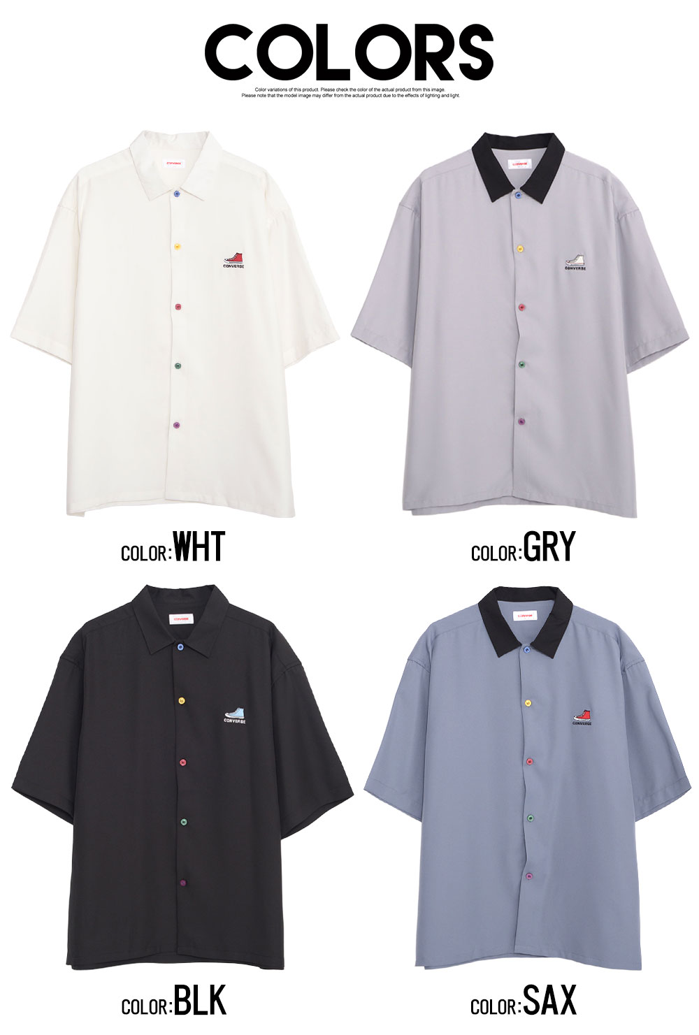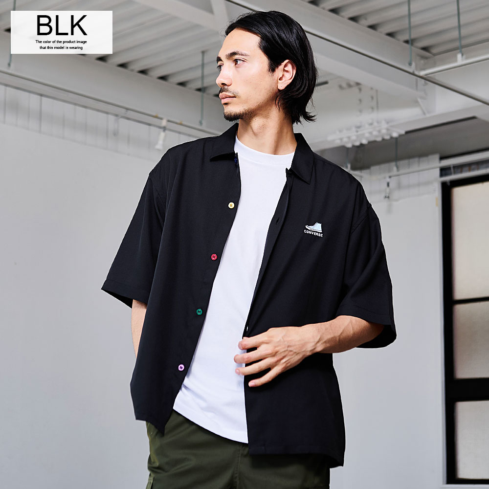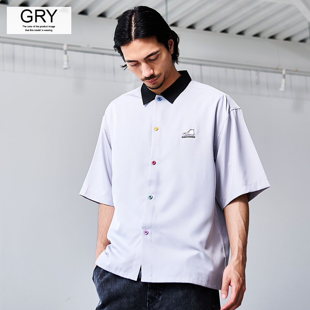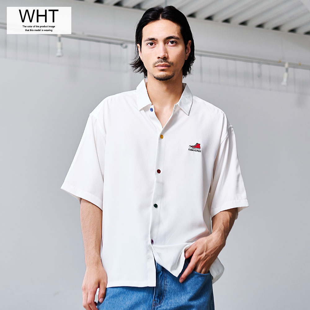 シャツ メンズ 半袖 半袖シャツ CONVERSE コンバース ブランド おしゃれ 大きいサイズ トップス 羽織 カジュアルシャツ レギュラーカラー ロゴ 刺繍 ワンポイント 無地 オーバーサイズ ゆったり ホワイト グレー ブラック サックス 白 黒 服 春 夏 春服 夏服 20代 30代 40代