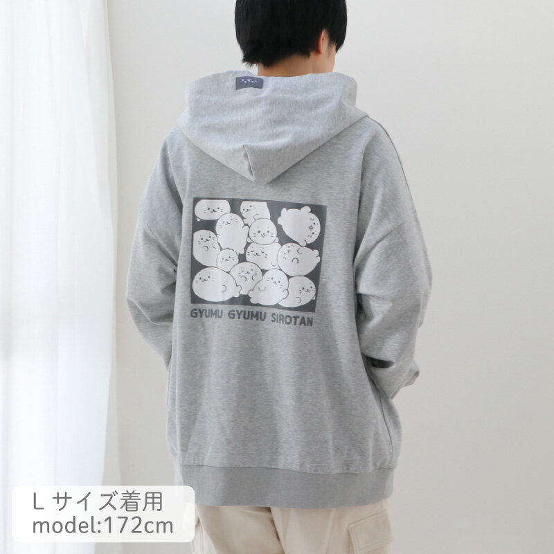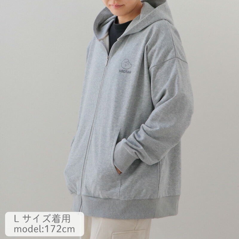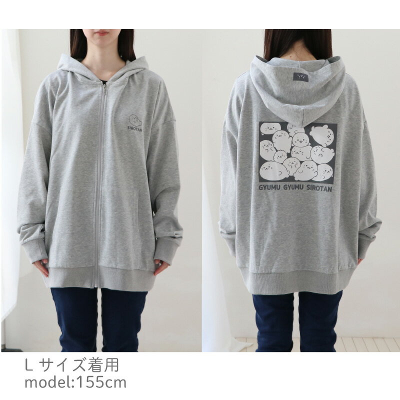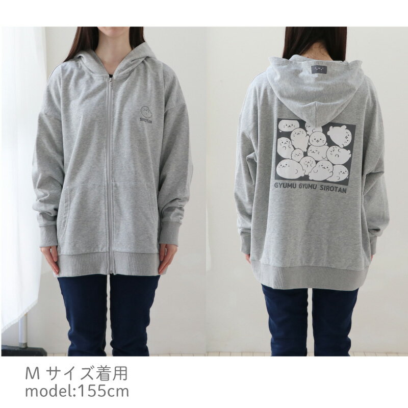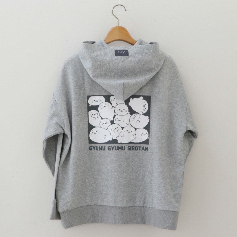 しろたん ジップパーカー つみつみ S/M/L/X/ サイズ グレーレディース メンズ ユニセックス 長袖 スウェット ジップアップパーカー アウター 前開き 春 秋 冬 裏毛 裏パイル あざらし アザラシ かわいい キャラクター ギフト プレゼント 【9月レビューキャンペーン】