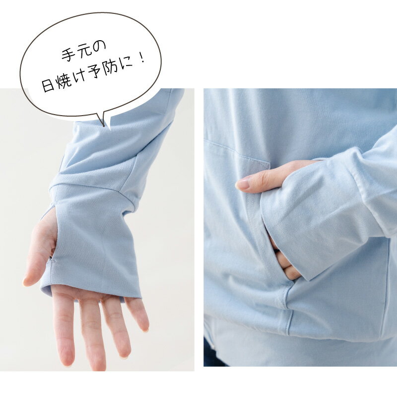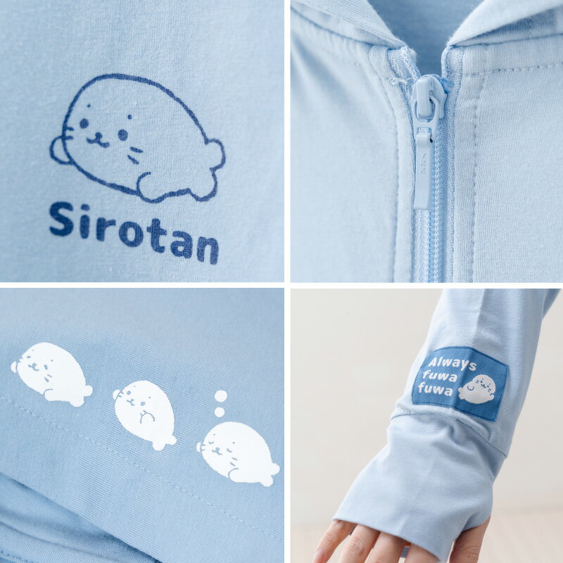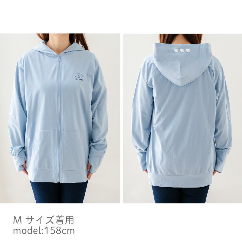 しろたん 指穴付ジップパーカー 水色 S/M/L/XLレディース メンズ ユニセックス 長袖 スウェット ジップアップパーカー UV対策 日焼け防止 紫外線対策 あざらし アザラシ かわいい キャラクター ギフト プレゼント マザーガーデン