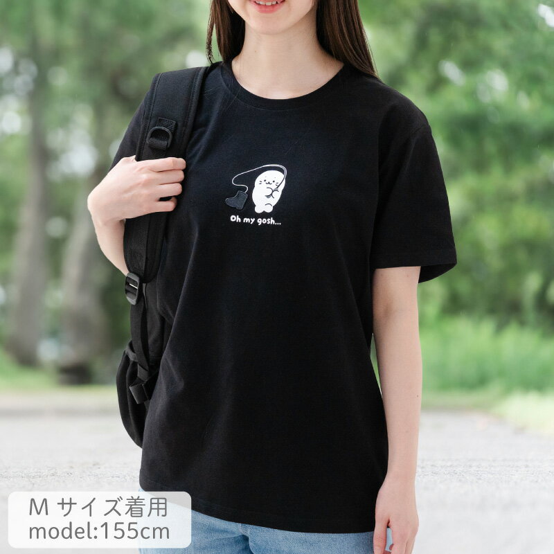 しろたん Tシャツ 半袖 《長靴柄》 黒色 S/M/L/XL レディース メンズ ユニセックス 男女兼用 カジュアル あざらし アザラシ かわいい キャラクター プレゼント ギフト マザーガーデン