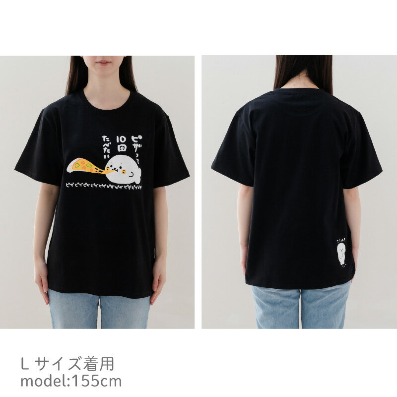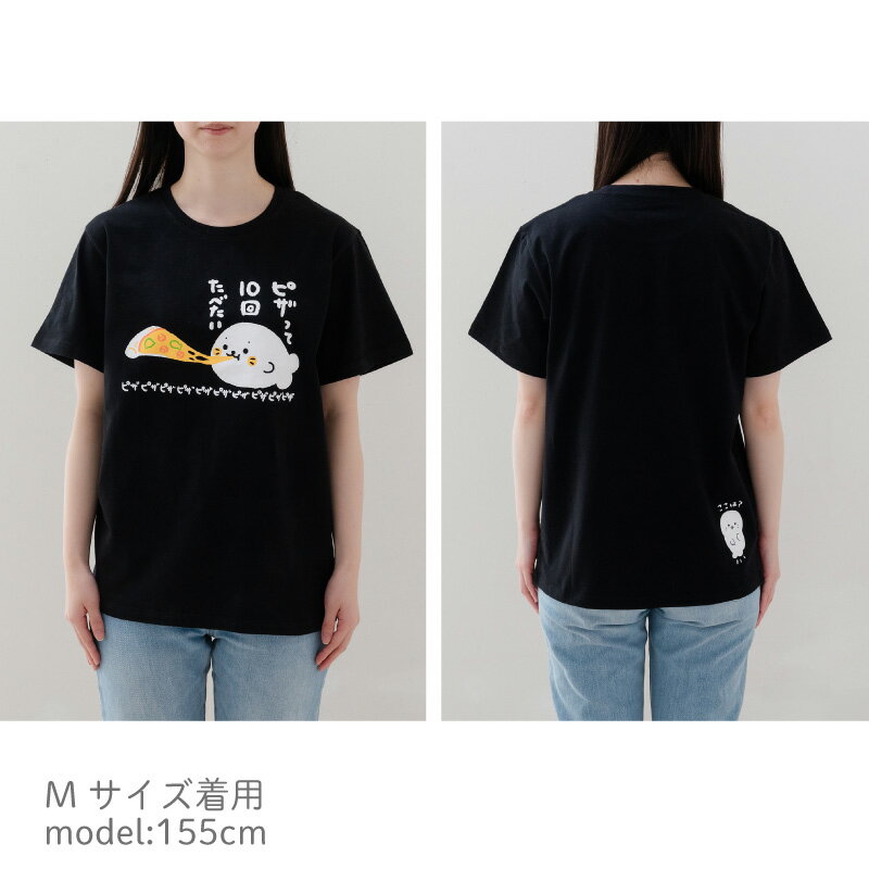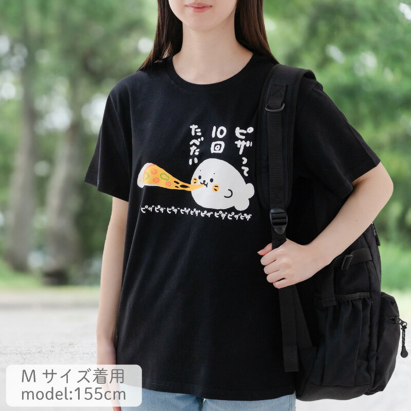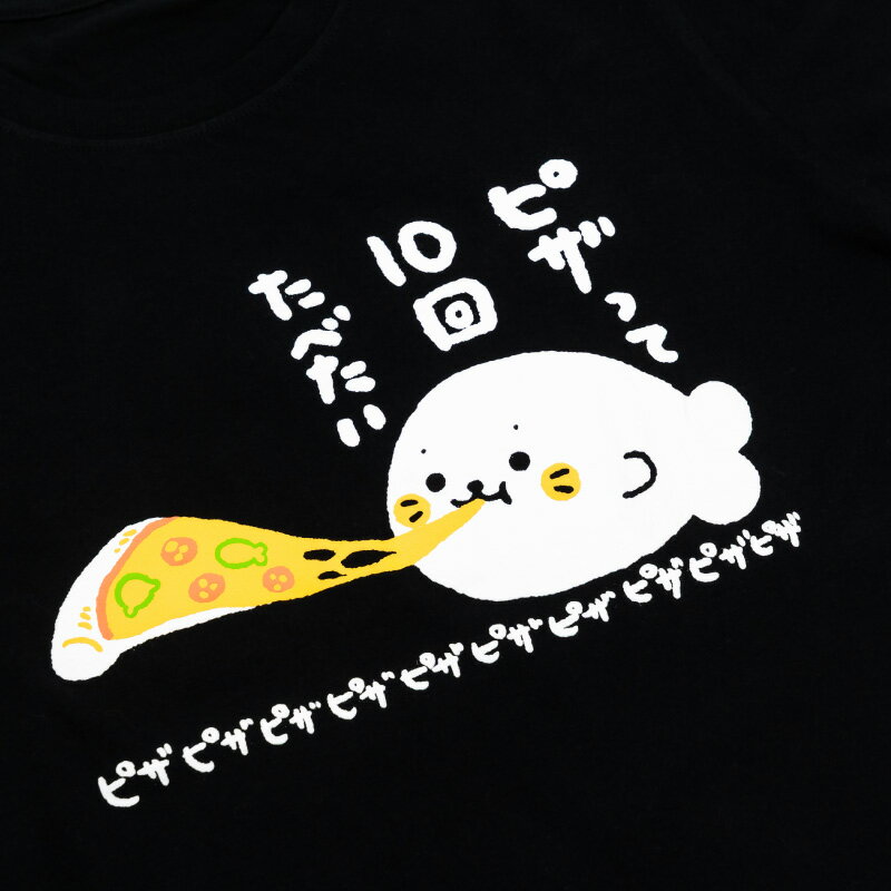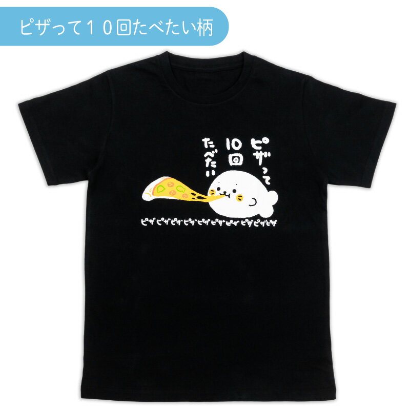 しろたん Tシャツ 半袖 《ピザって10回たべたい柄》 黒色 S/M/L/XL レディース メンズ ユニセックス 男女兼用 カジュアル あざらし アザラシ かわいい キャラクター プレゼント ギフト マザーガーデン