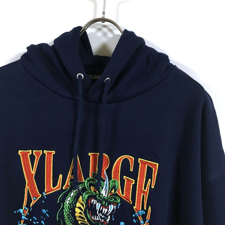 XLARGE エクストララージ DRAGON PULLOVER HOODED SWEAT パーカー 長袖 メンズ 【 送料無料 】 ドラゴン 刺繍 フード スウェット トレーナー 裏毛 ストリート系 ヒップホップ スケーター ファッション ブラック ネイビー グリーン M L XL サイズ