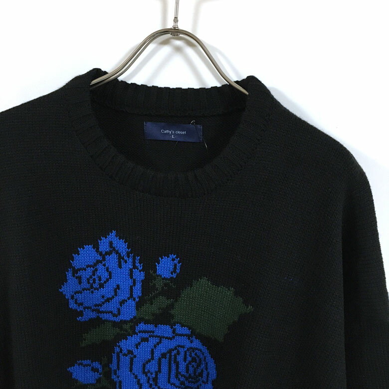 【 アウトレット 】 花柄 ジャガード ビッグシルエット クルー ニット セーター 長袖 メンズ 【 送料無料 】 インナー アウター トップス ストリート系 ファッション オフホワイト ブラック チャコール M L オーバーサイズ