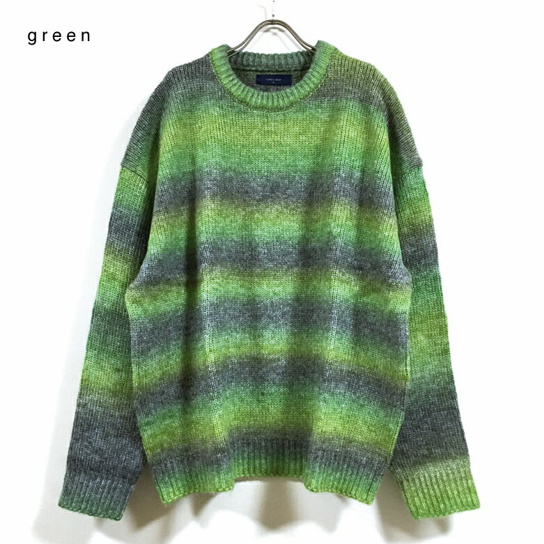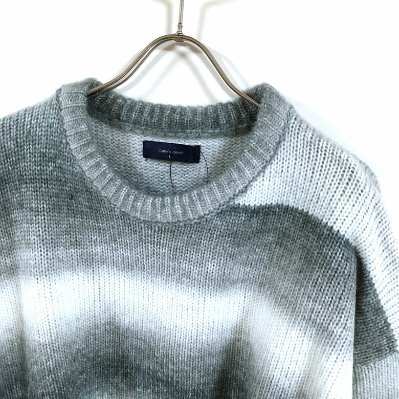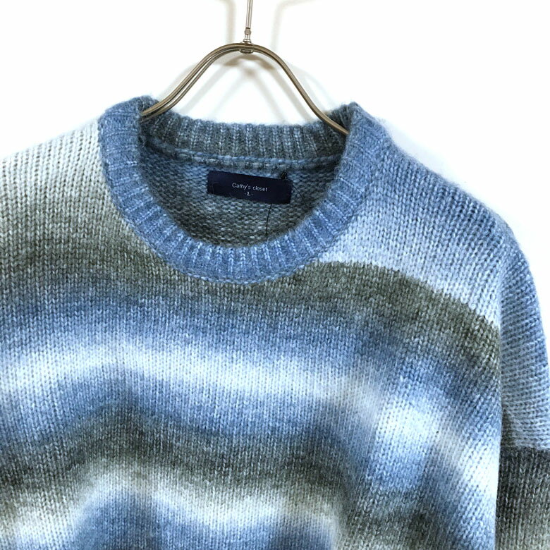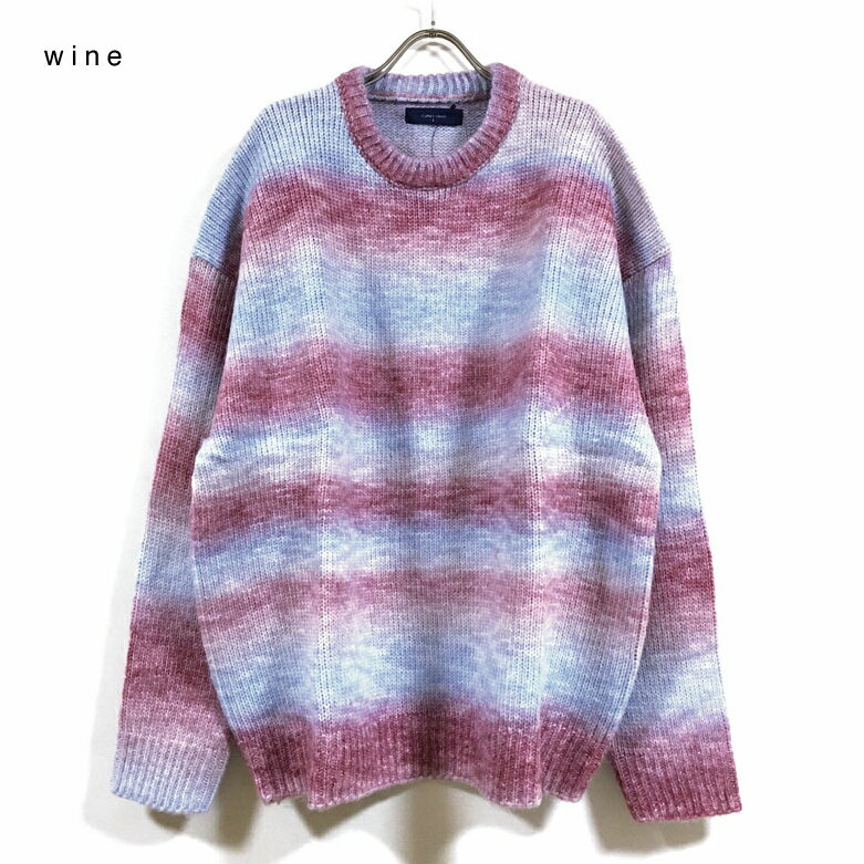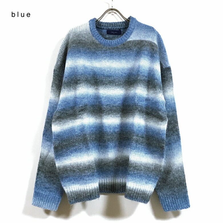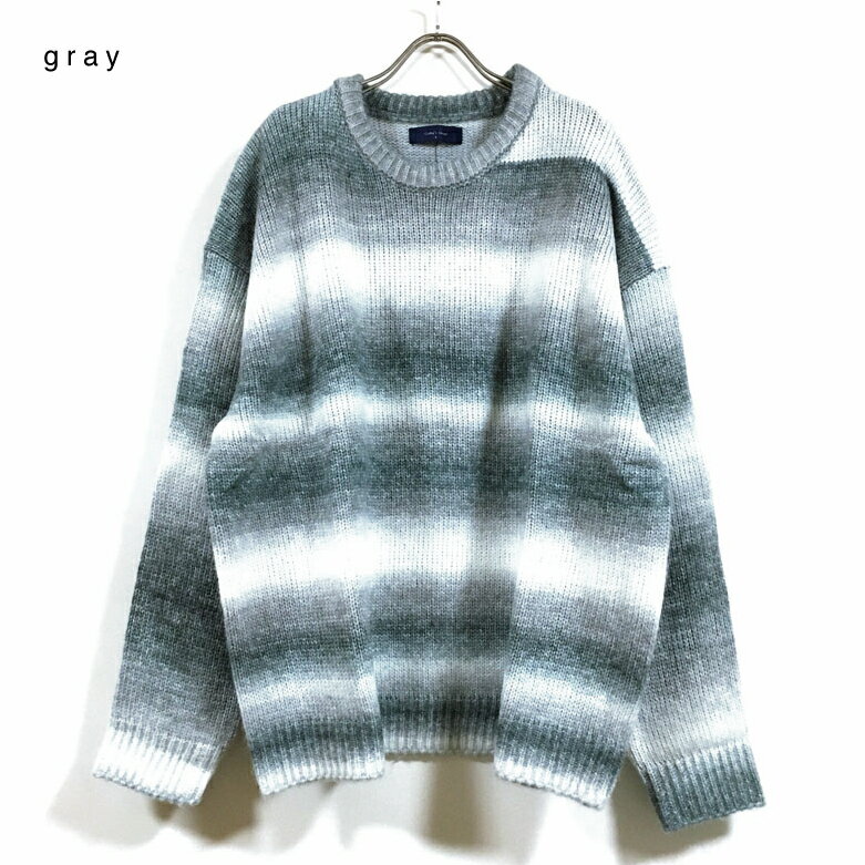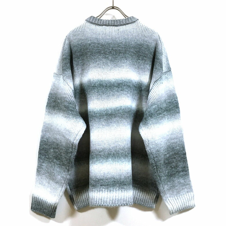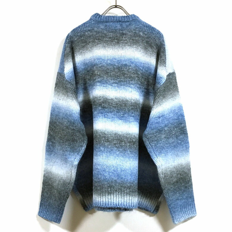 グラデーション ボーダー ウール混 ビッグシルエット クルー ニット セーター 長袖 32708007 メンズ 【 送料無料 】 ドロップショルダー クルーネック ストリート系 ファッション カジュアル インナー アウター M L オーバーサイズ