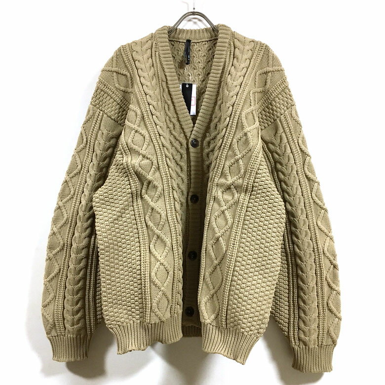 アラン編み ビッグシルエット ニット カーディガン 長袖 223912 メンズ 【 送料無料 】 秋冬 セーター トップス アウター ストリート系 ファッション ブラック グリーン ブラウン ベージュ M L XL オーバーサイズ