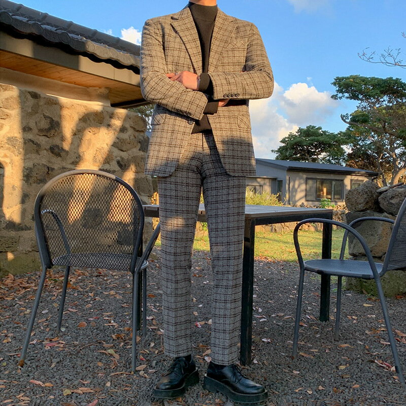 【全品P10倍アップ!マラソン限定】セットアップ メンズ チェク柄 スーツジャケット ワイドシルエット 高級感 シンプル