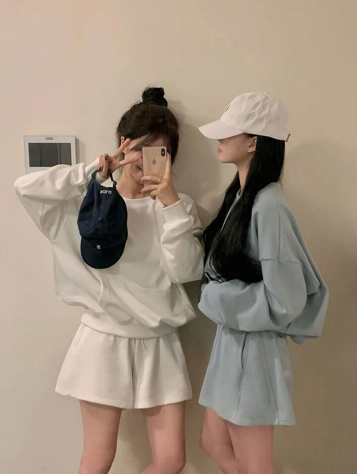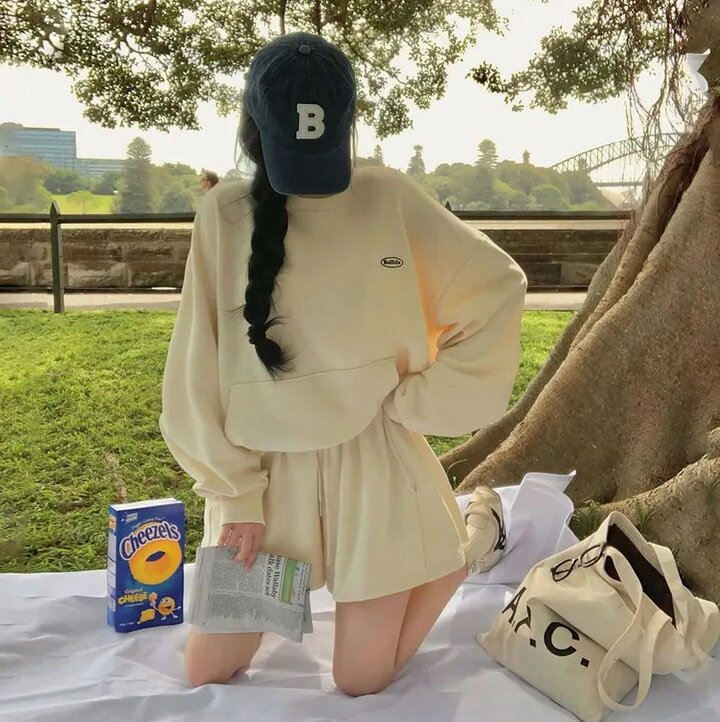 【最大2000円まとめクーポン利用可】カジュアル ウェア セットアップ 丸首 スウェット + ショート パンツ 2点セット