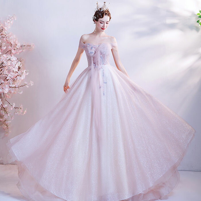 パーティードレス カラードレス サクラピンク ロングドレス☆HeartSunny☆e372☆結婚式/披露宴/二次会/演奏会/発表会/お呼ばれ/大きい/小さい/イブニング/ナイト/フォトウェディング/格安/激安
