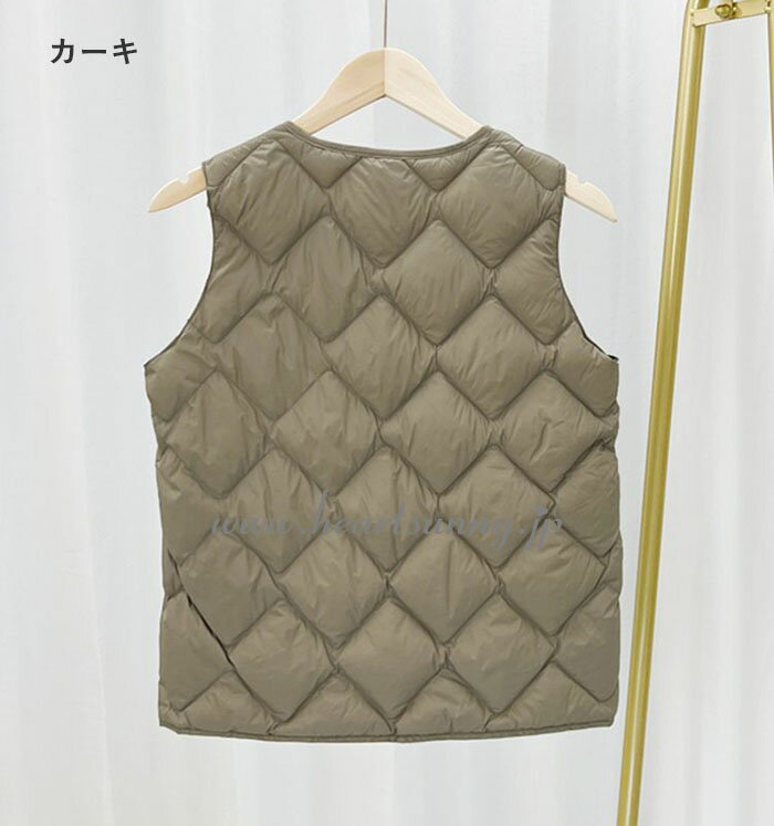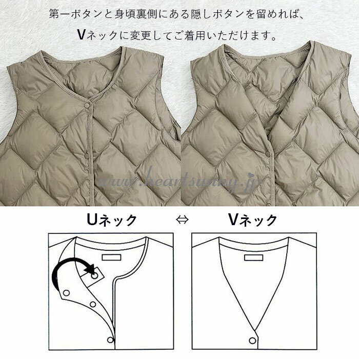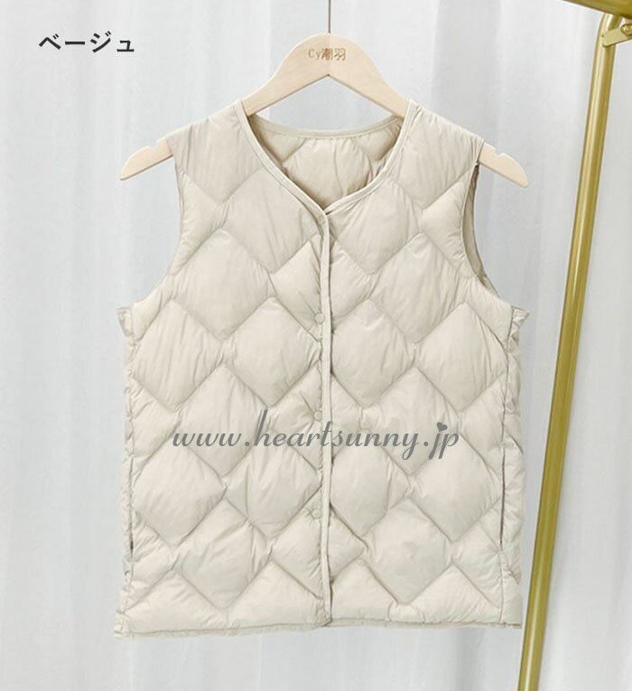 ウルトラライトダウンベスト 菱型 レディース 丸首 ウンコート インナーダウンジャケット Uネック⇔Vネック 2way トップス 中綿 大きいサイズ 撥水 軽量 薄い 暖かい 無地 シンプル ショート丈 アウター 収納袋 ポーチ付き 秋 冬 婦人 おしゃれ 防寒