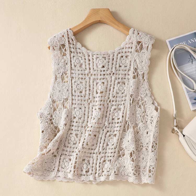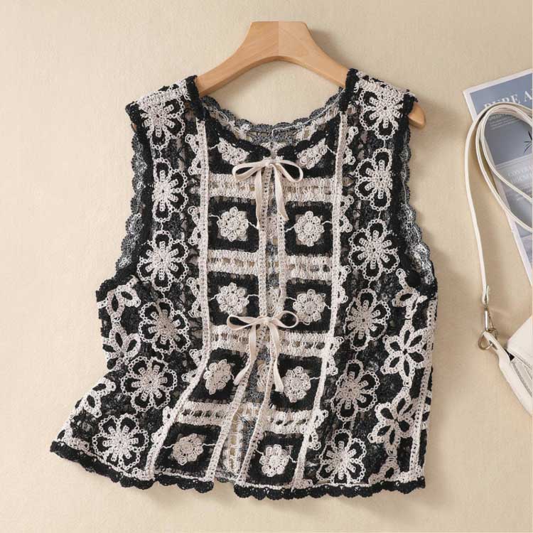 クロシェ編み ショート丈 レディース 透かし編み レイヤード カーディガン ニットベスト 夏 花柄 プルオーバー かぎ針編み ベスト ベスト ベスト クロシェ編み 涼しい 重ね着 通勤 きれいめ レトロ おしゃれ 大人カジュアル ゆったり