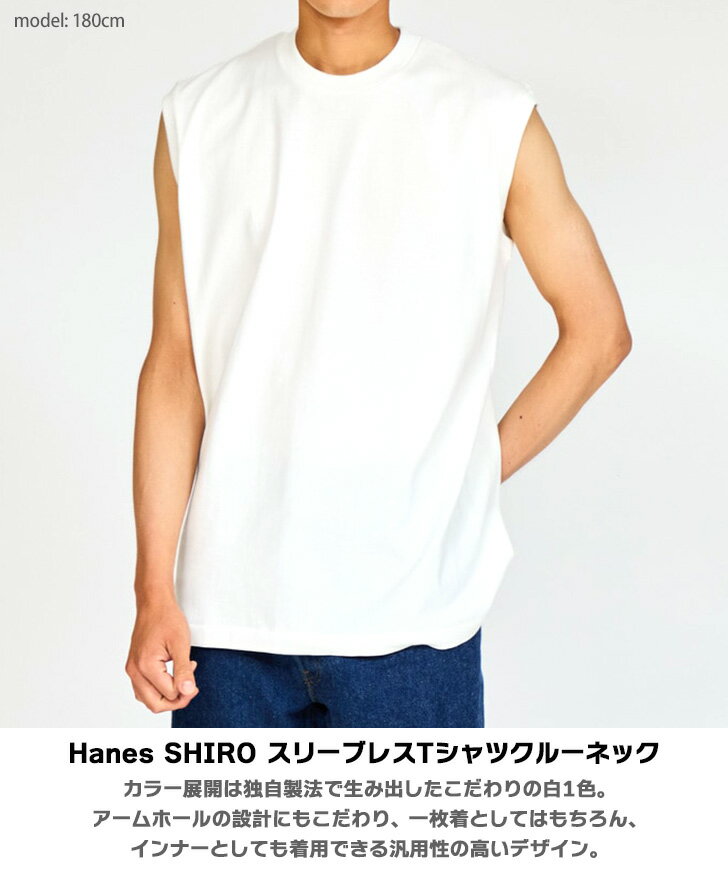 \本日店内EVENT/ 送料無料 Hanes ヘインズ SHIRO スリーブレスTシャツ クルーネック HM3-B201 メンズ レディース トップス ノースリーブ タンクトップ ブランド インナー 厚手 7オンス コットン100% ホワイト メール便