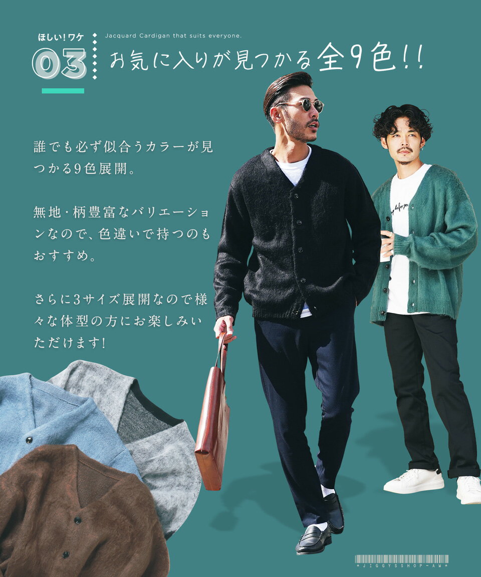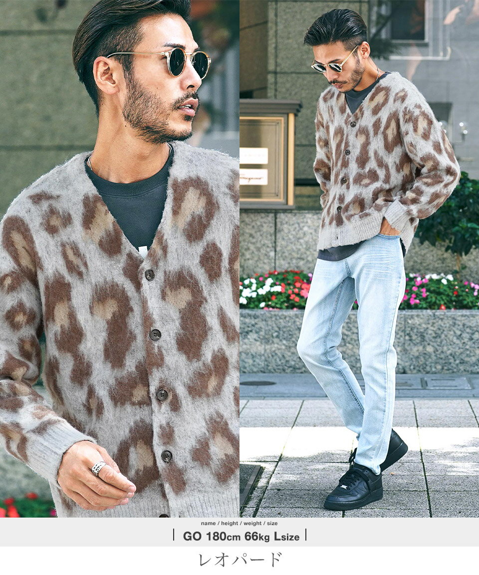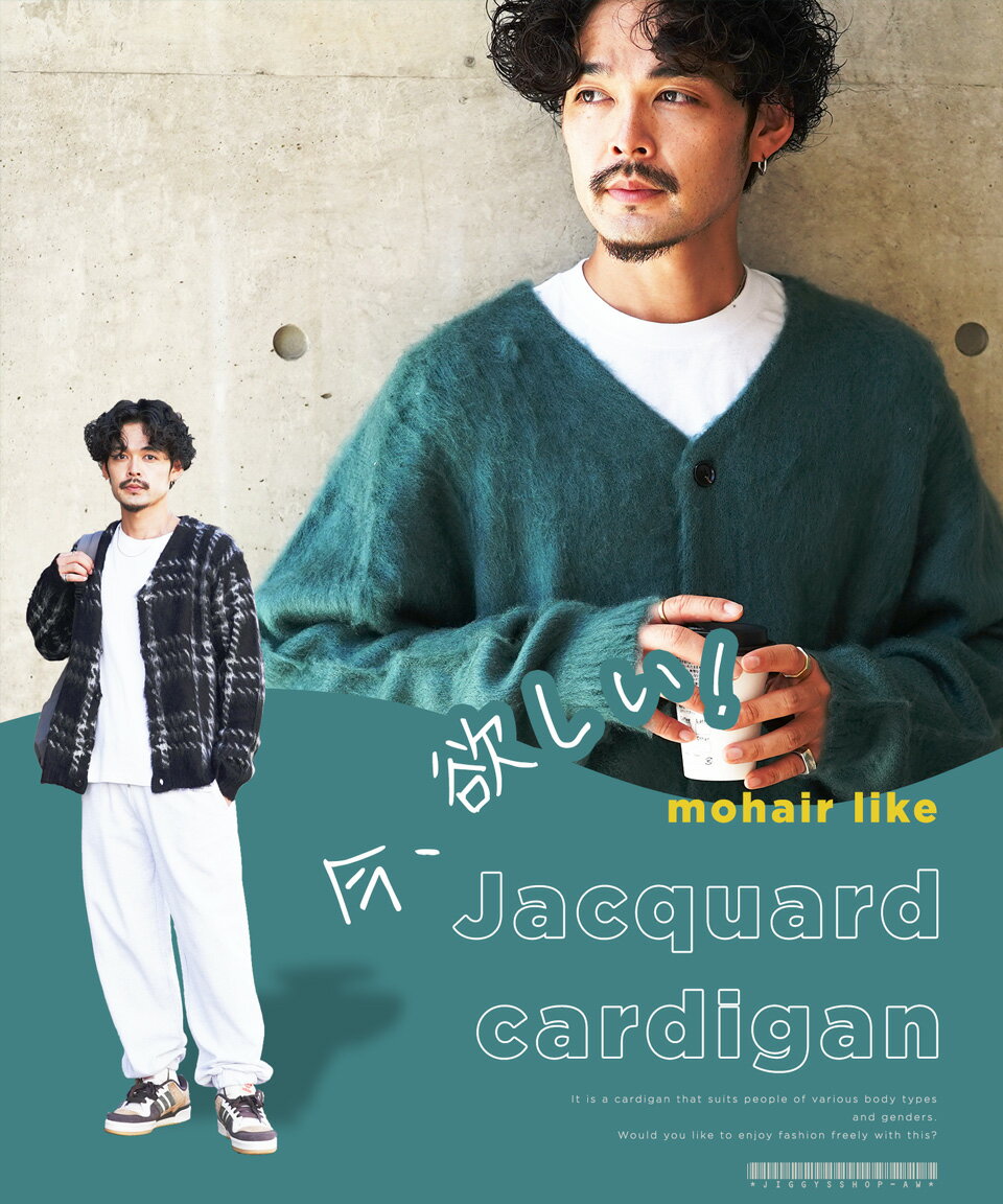 カーディガン メンズ ニット 厚手 ウール◆モヘア調Wジャガードカーディガン◆カーデ ニットカーディガン オーバーサイズ ゆったり 黒 ブラック グリーン ヒョウ 柄 おしゃれ かわいい アクリル モヘア ビジネス オフィス 秋冬 冬 冬服