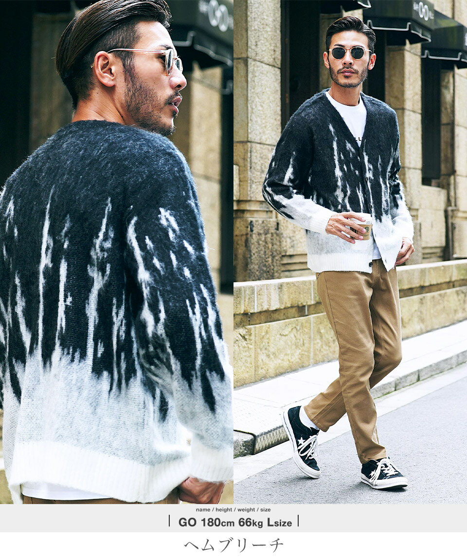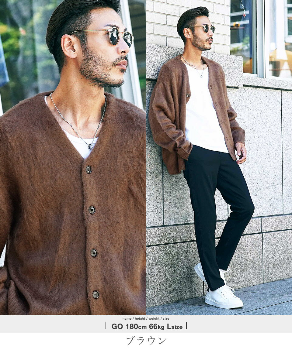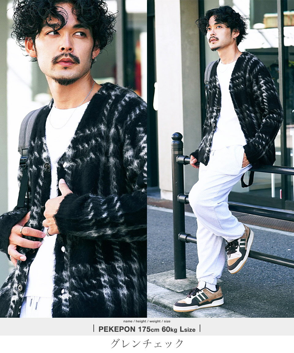 カーディガン メンズ ニット 厚手 ウール◆モヘア調Wジャガードカーディガン◆カーデ ニットカーディガン オーバーサイズ ゆったり 黒 ブラック グリーン ヒョウ 柄 おしゃれ かわいい アクリル モヘア ビジネス オフィス 秋冬 冬 冬服