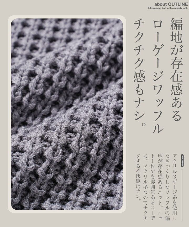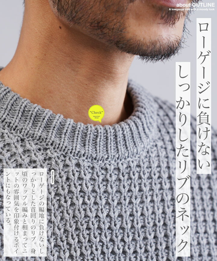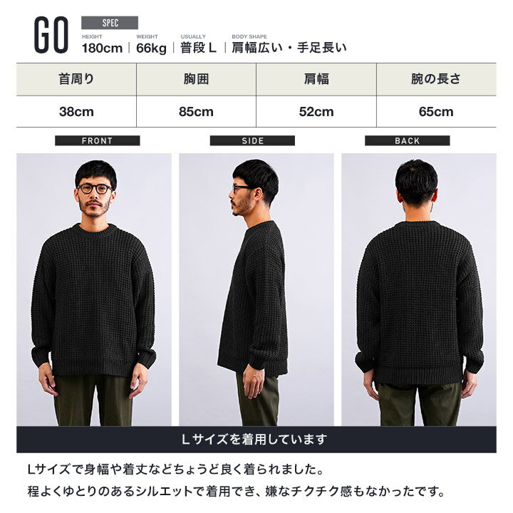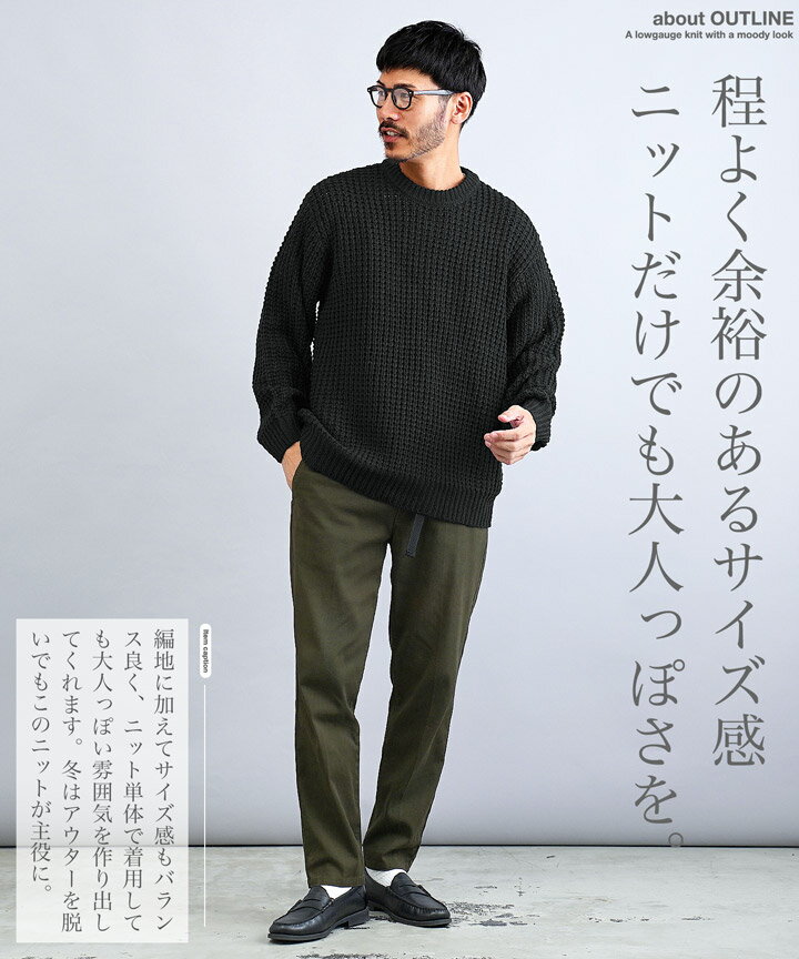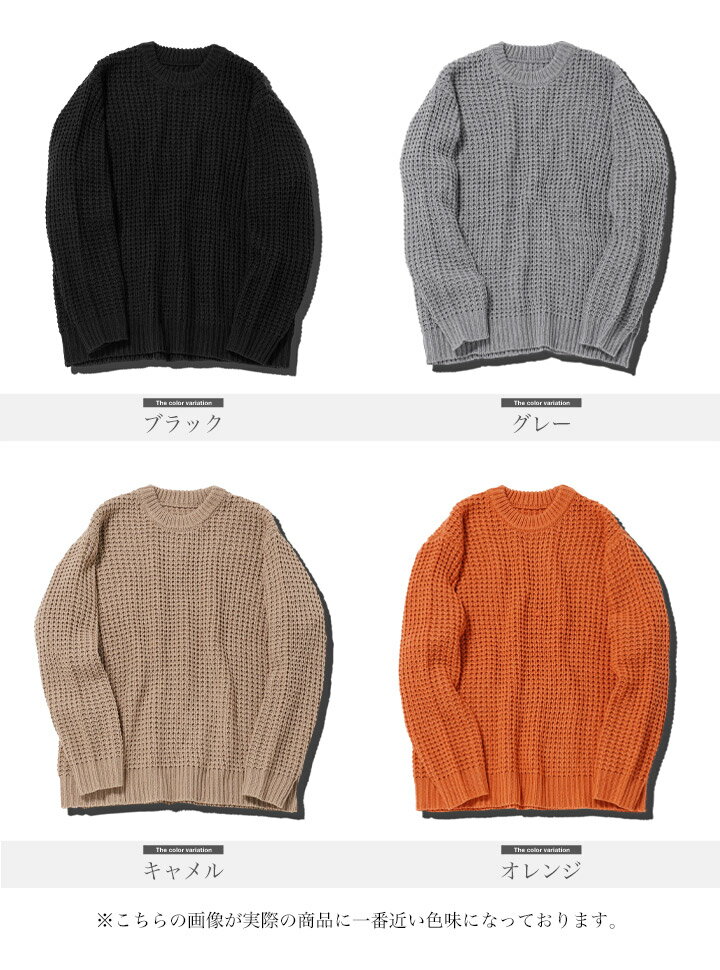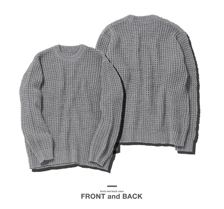 セーター メンズ ニット ニットセーター 厚手 冬物 チクチクしない◆ビッグワッフルクルーネックニット◆ワッフル素材 肉厚 長袖 黒 丸首 クルーネック メンズファッション 服 秋服 秋物 冬服 冬 おしゃれ 暖かい
