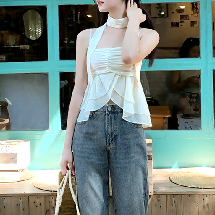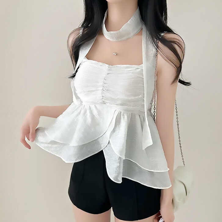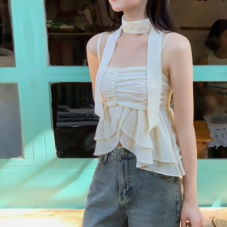 【ネコポスOK】ストールフレアキャミ ブラウス シアー ノースリ 透け ブローチ フェミニン プルオーバー フレアトップス 春夏 かわいい トップス ガーリー 無地 サマーキャミ ストール シアーブラウス セクシー SneepDip あざと フェミニン フェミカジ 韓国ファッション