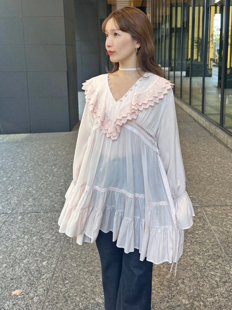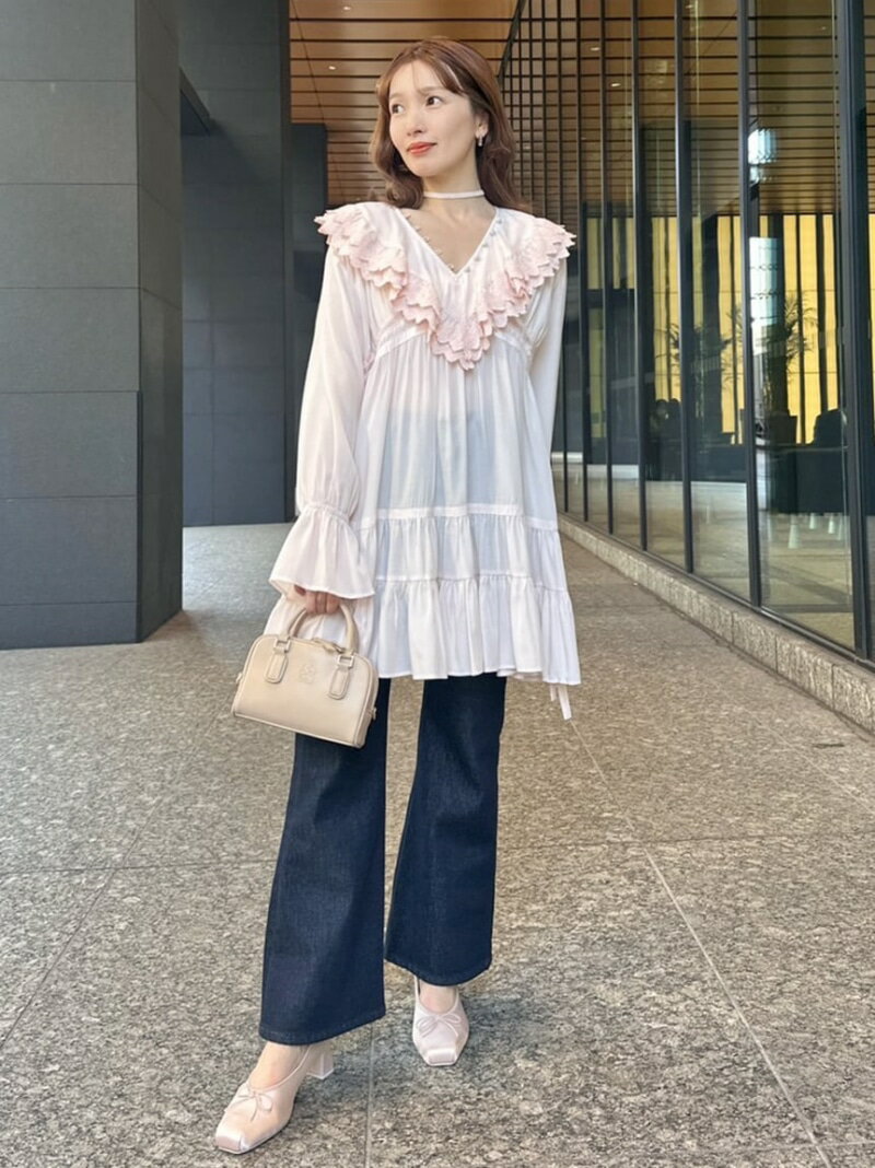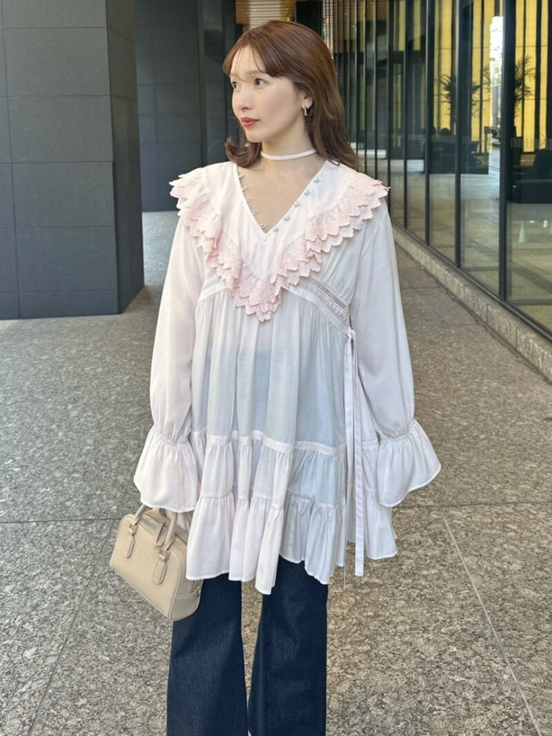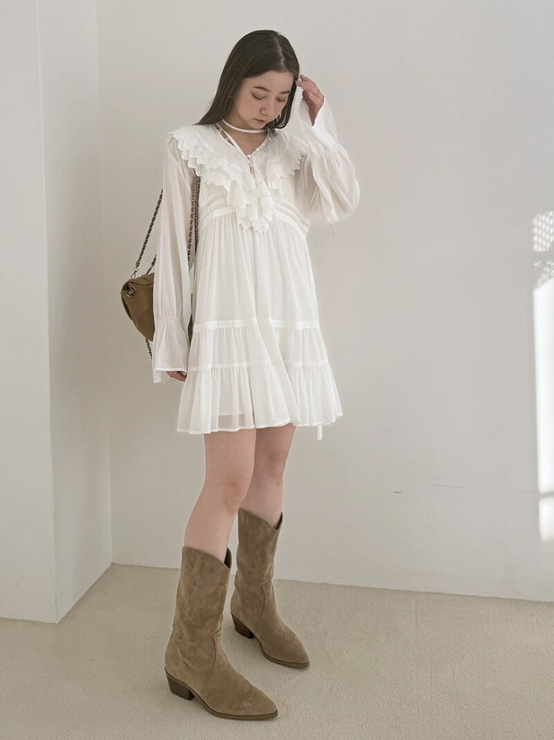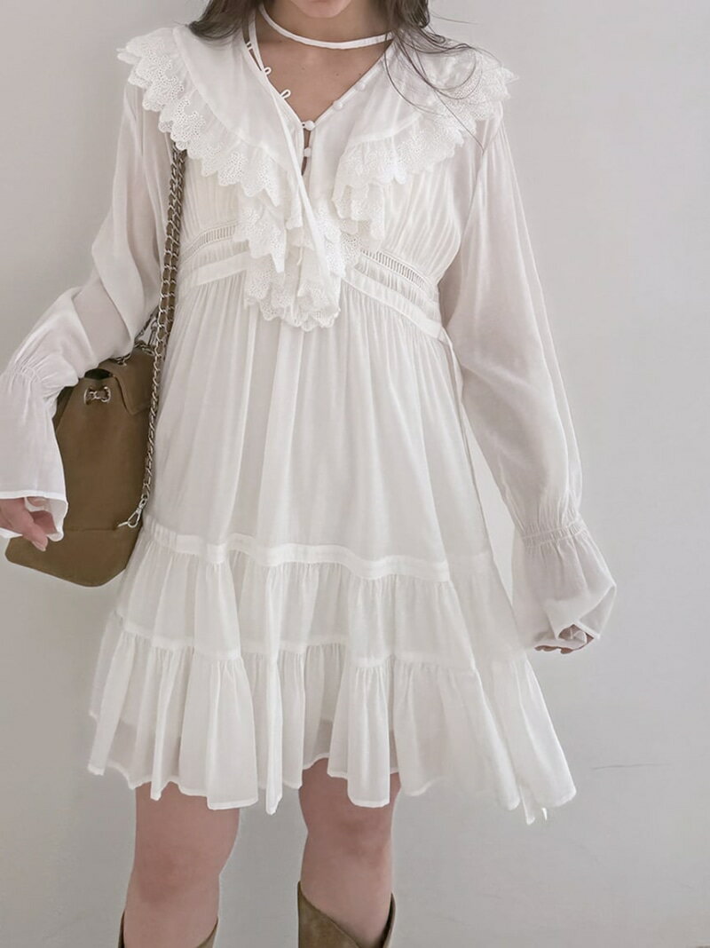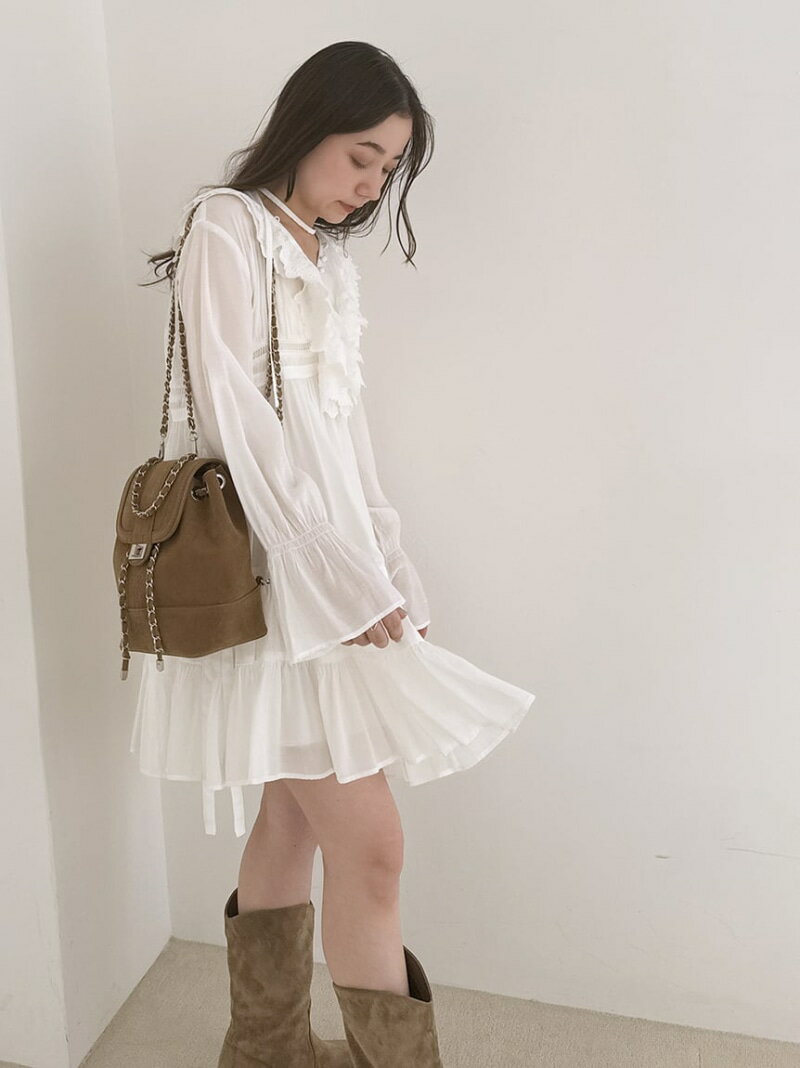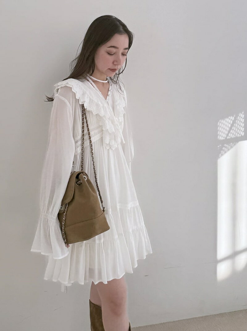 コットンライクラッフルカラーチュニック SNIDEL スナイデル ワンピース・ドレス チュニック ホワイト【送料無料】[Rakuten Fashion]