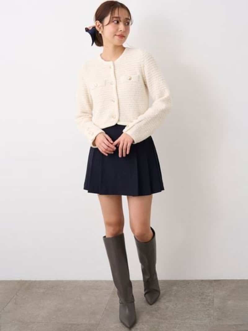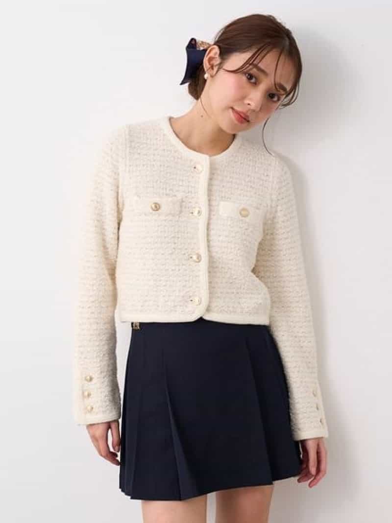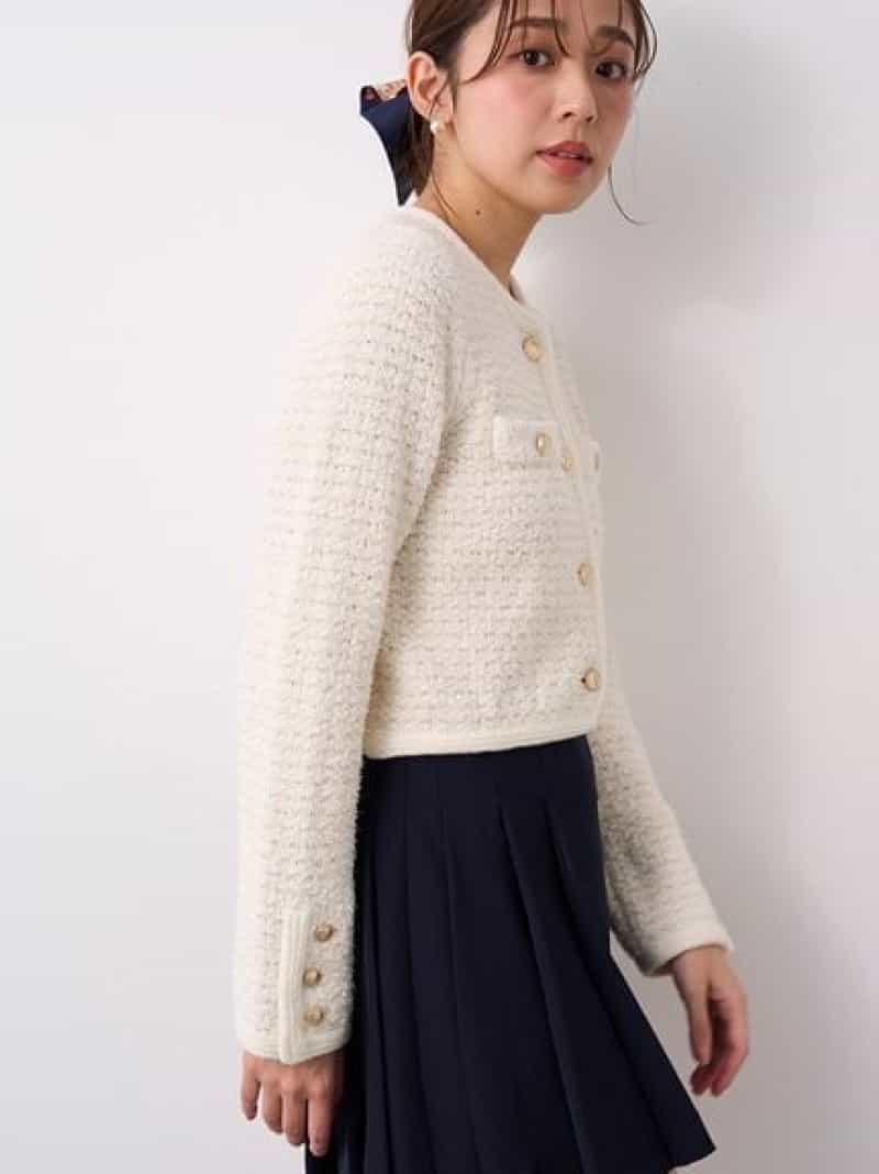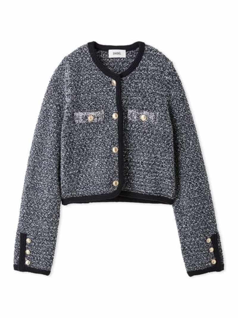 ツイードニットカーディガン SNIDEL スナイデル トップス カーディガン ネイビー ベージュ【送料無料】[Rakuten Fashion]